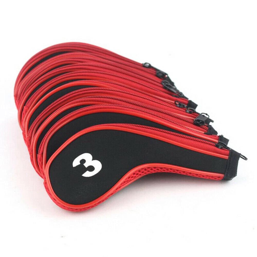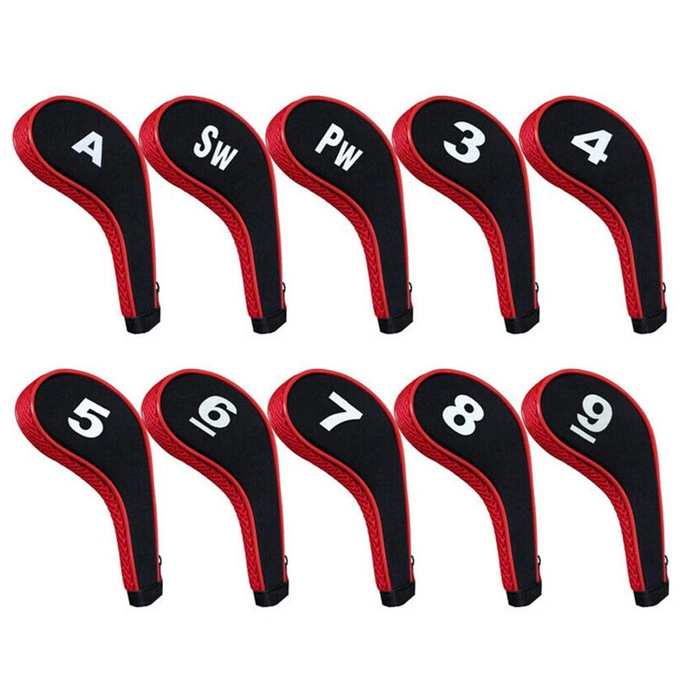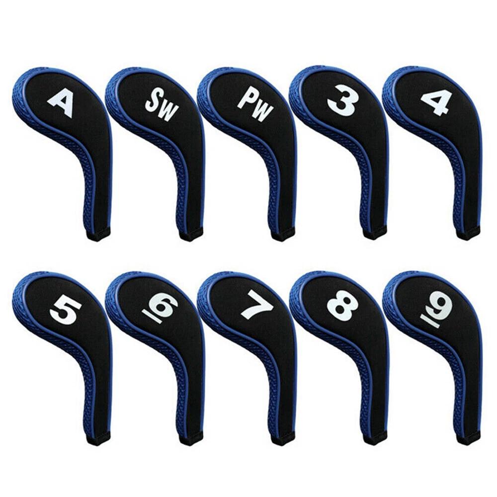 10pcs Neoprene Golf Club Iron Head Cover Headcovers Zipper Long Neck 3-9 A SW PW