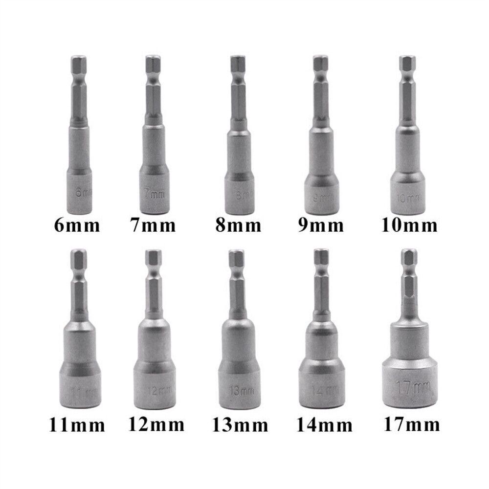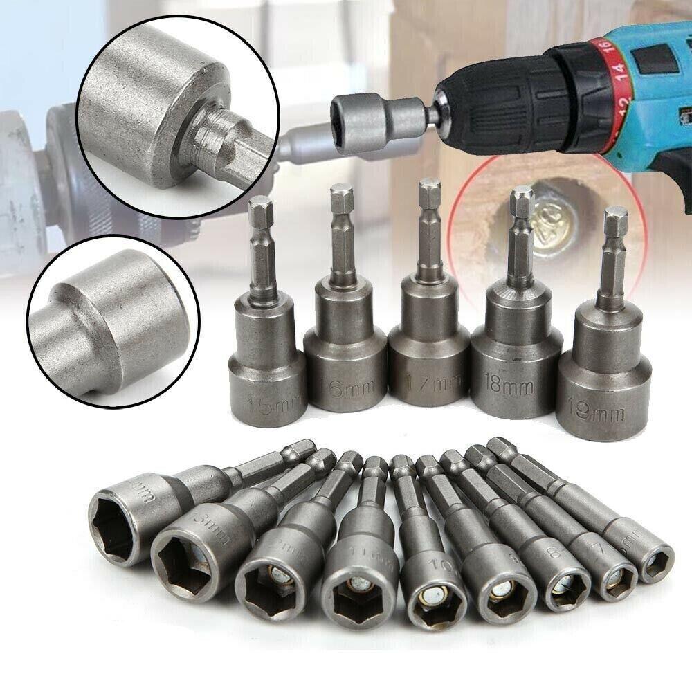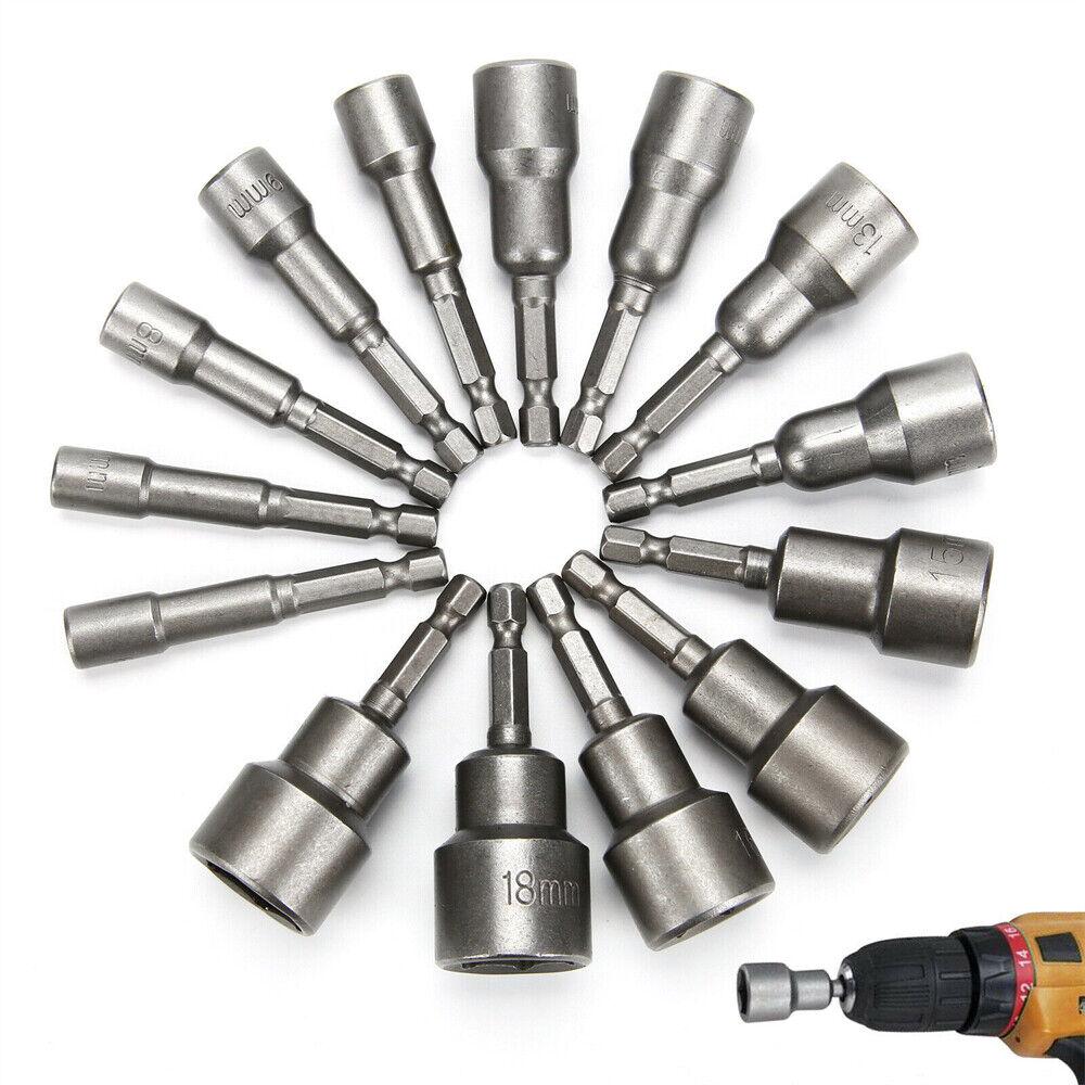 14 Size Socket Magnetic Nut Driver Set Drill Bit Adapter 1/4” Hex Shank 6-19MM