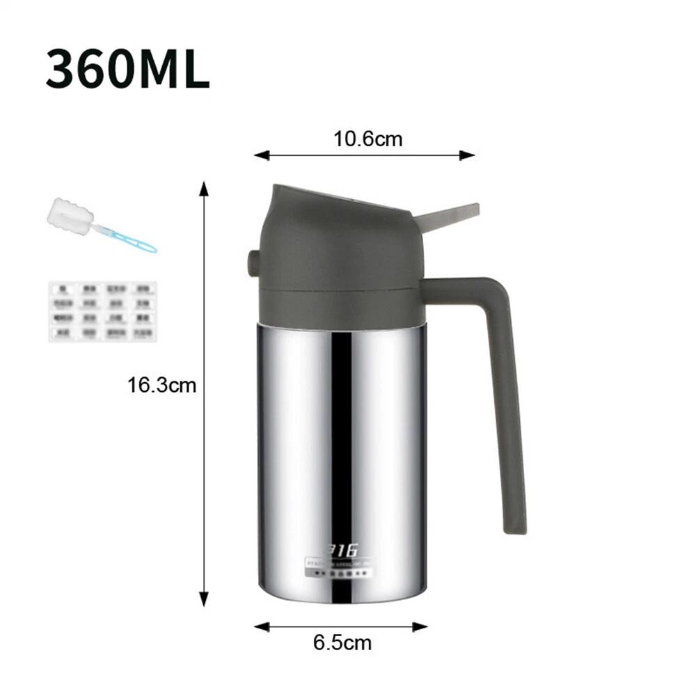 Stainless Steel Olive Oil Sprayer The food-grade spray bottle is made of premium stainless steel, not easy to break, and is stronger and more durable than other glass. The oil dispenser has an ergonomic handle that can be picked up anytime while cooking.