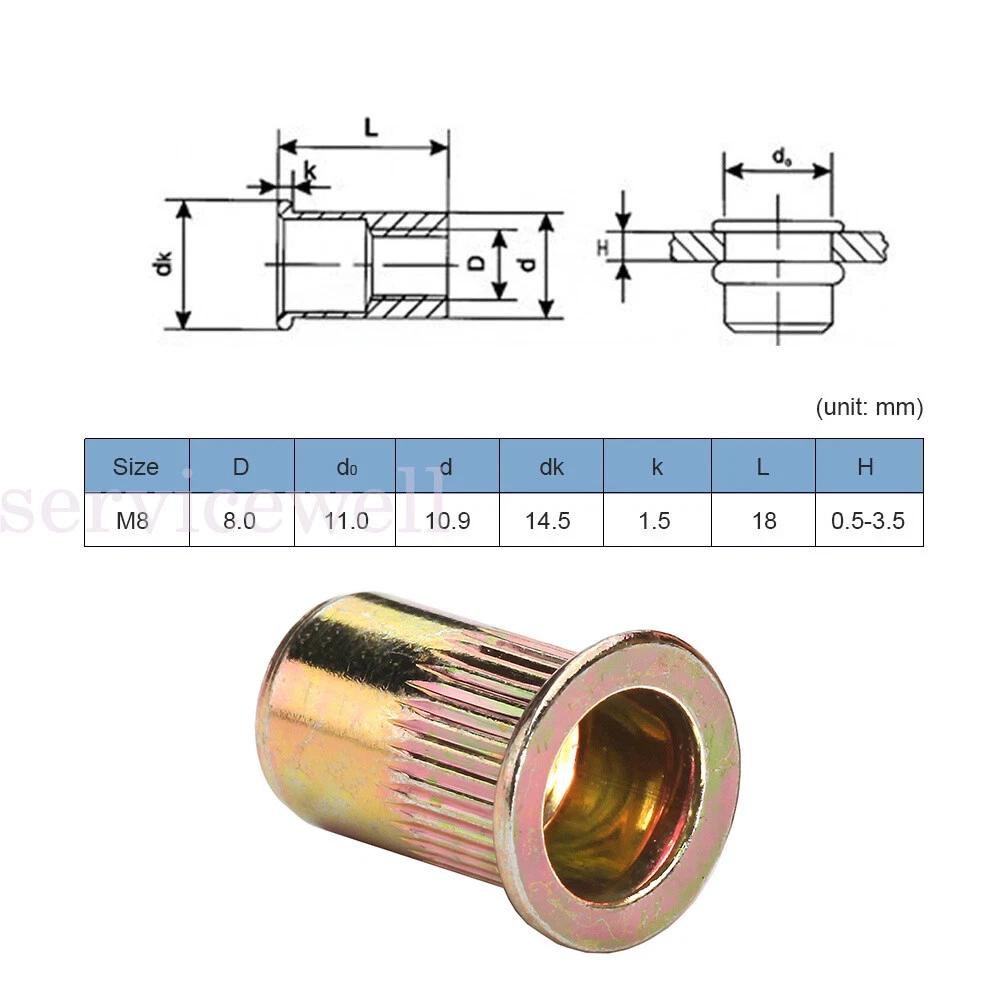 20pcs M8 Rivet Nuts Blind Nut Nutsert Rivnut Stainless Steel Zinc Plated AU