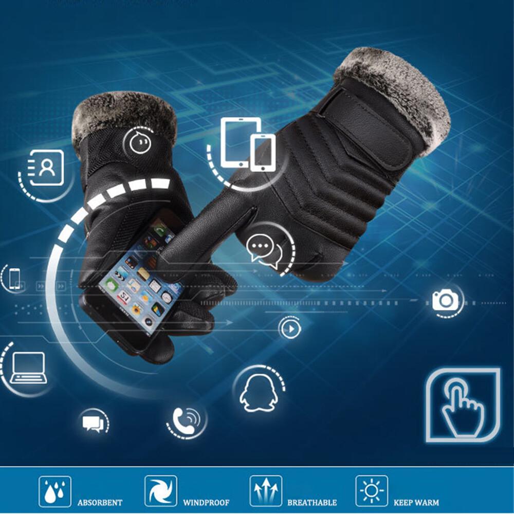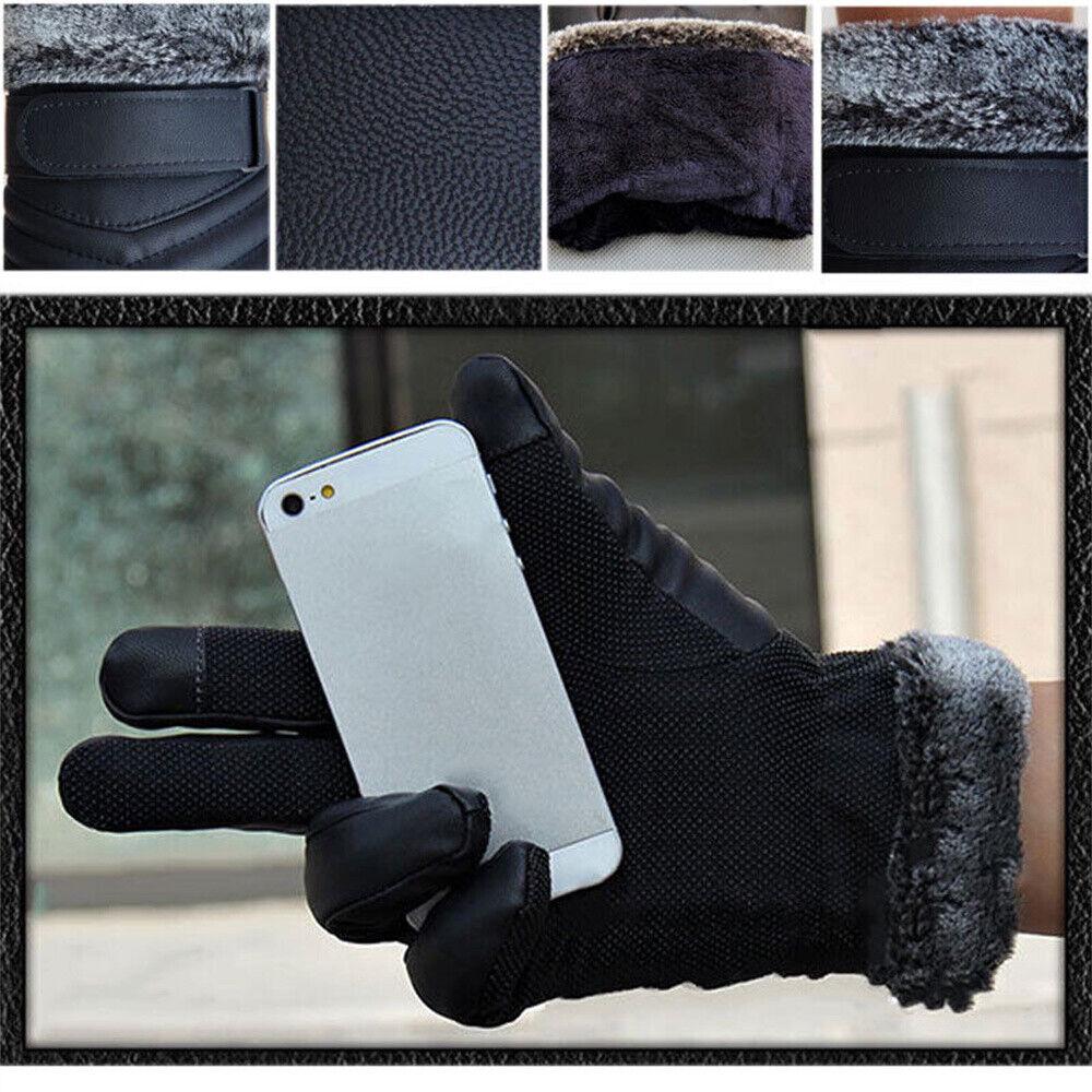 2PC Winter Warm PU Leather Wool Wrist Gloves Touch Screen Full Finger Fur Mitten
