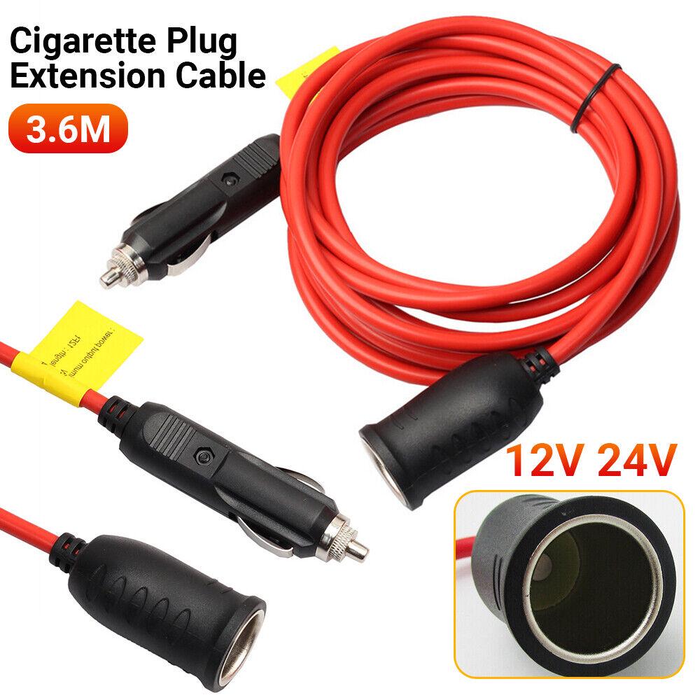 3.6m 12V Cigarette Plug Extension Cable Car Lighter Sockets Lead Wiring Adapter