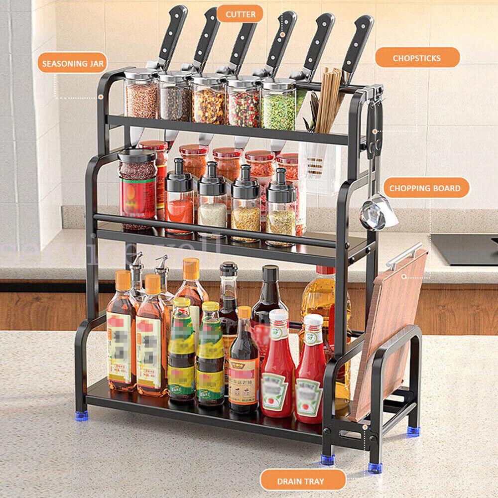 3 Tier Kitchen Cupboard Storage Spice Rack Pantry Bottle Organizer Stand Holder
