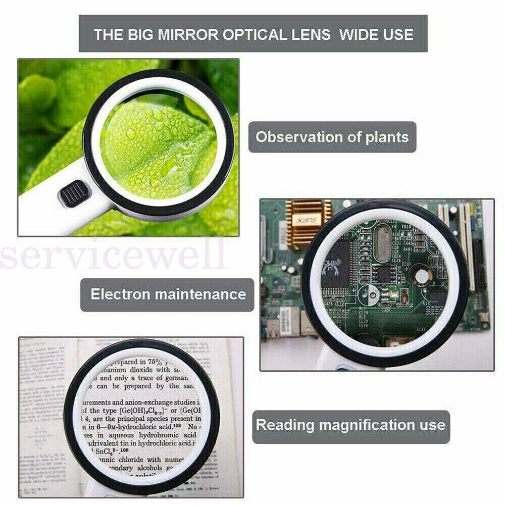 30X LED Magnifier Magnifying Glass with Light Handheld High Power Jumbo NEW