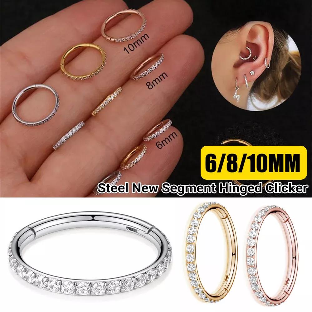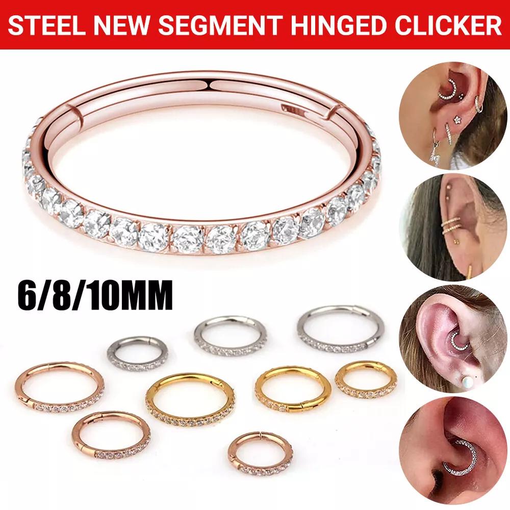 1/2PC 316L Stainless Segment Hinged Clicker Hoop Ring Ear Nose Lip Piercing Ring