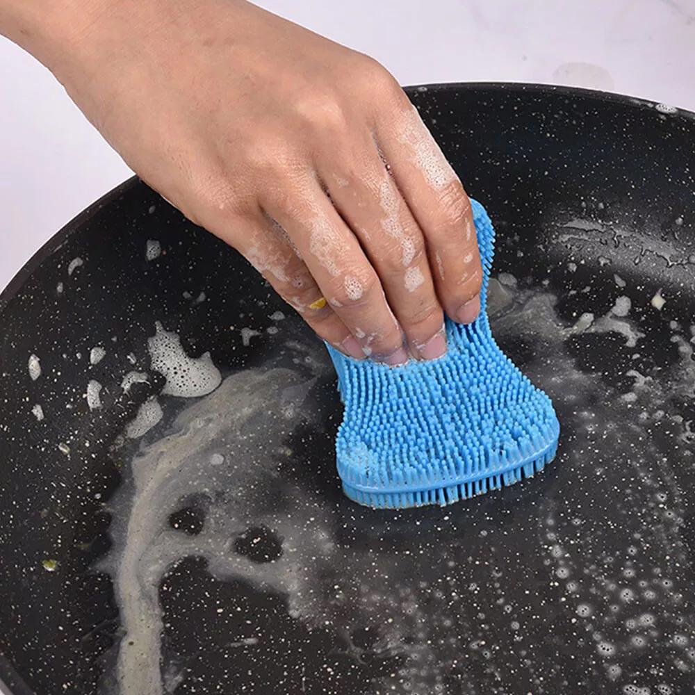 3PCS Home Kitchen Silicone Scrubber Sponge Brush Dish Pot Pan Washing Cleaning