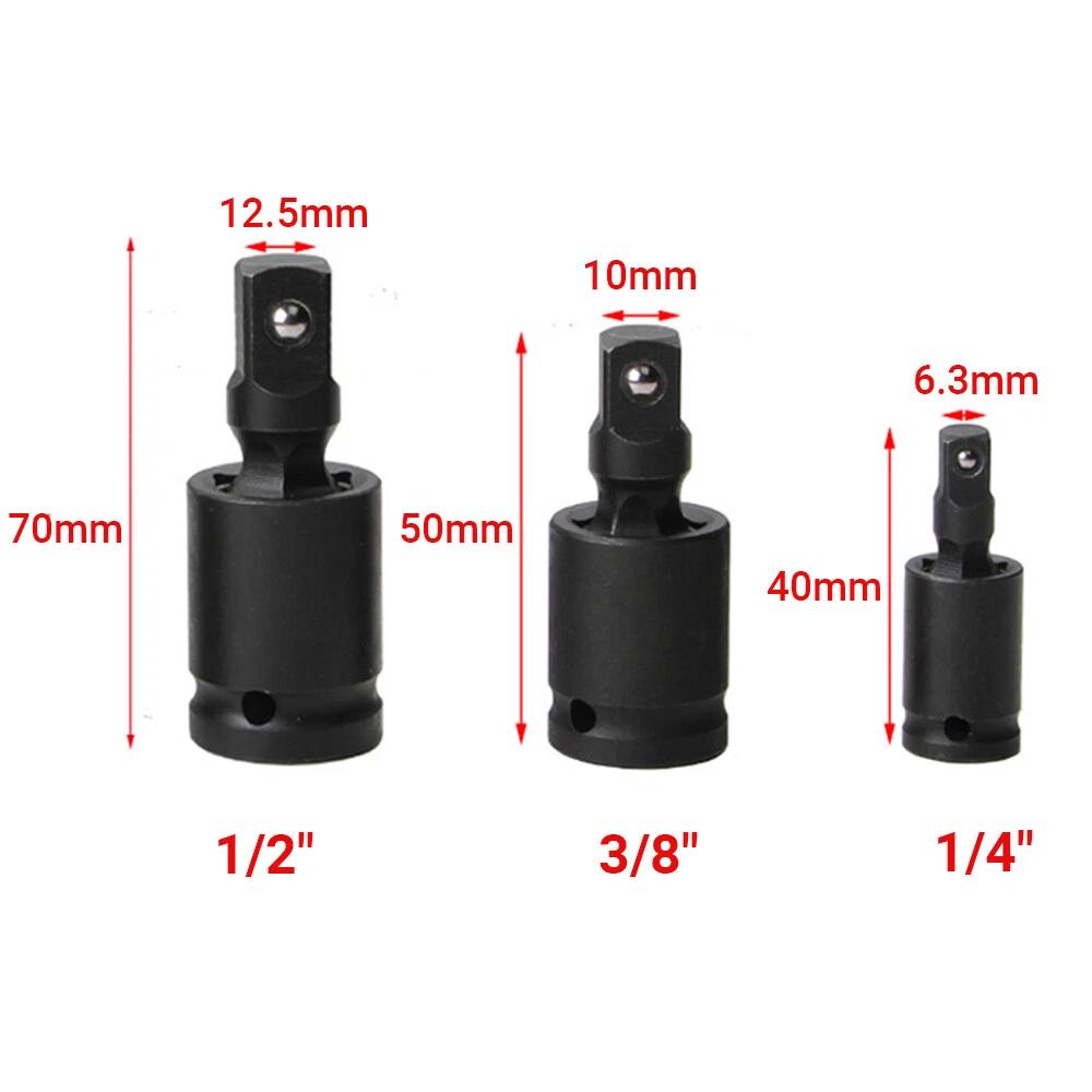 3PCS Swivel Wobble Socket Impact Universal Joint Drive Adapter Extension Chrome
