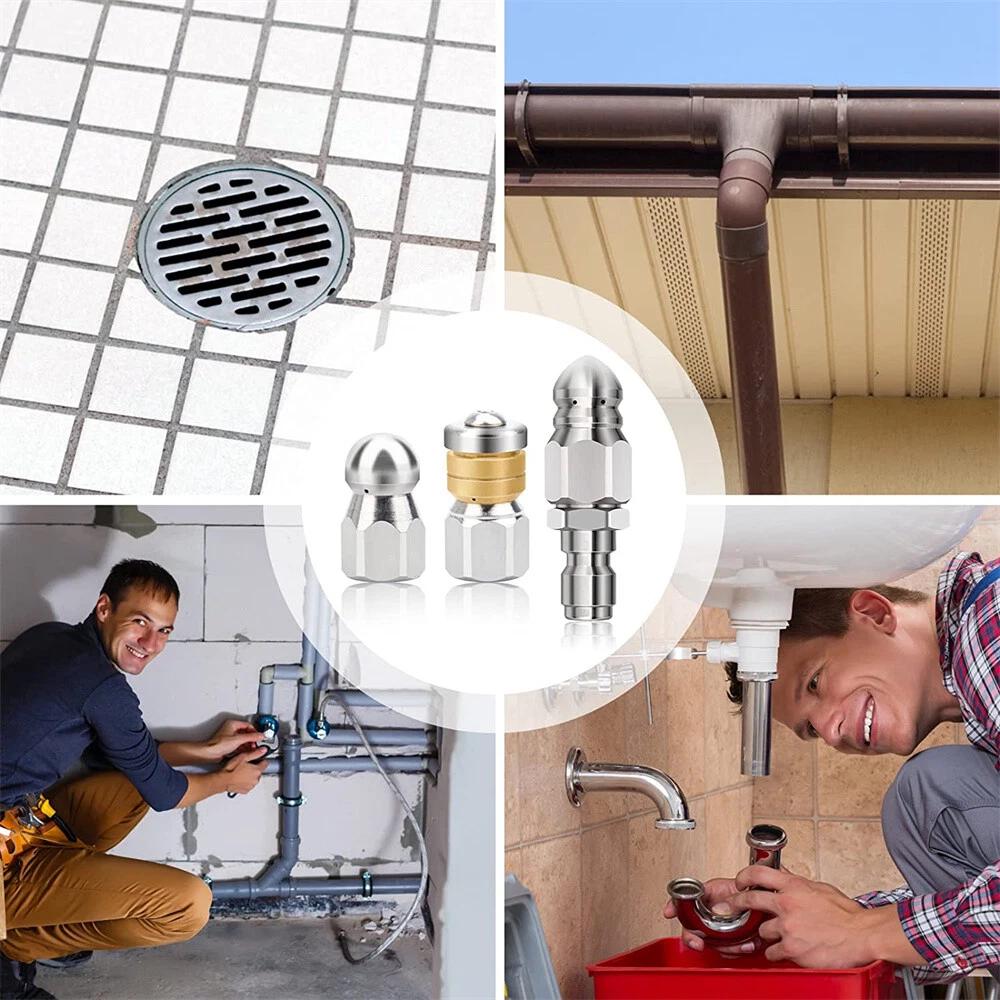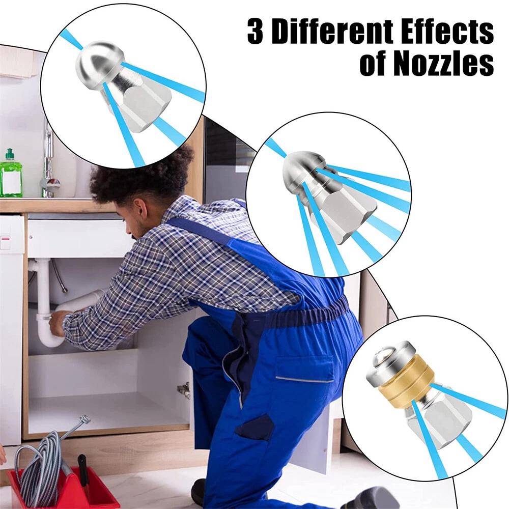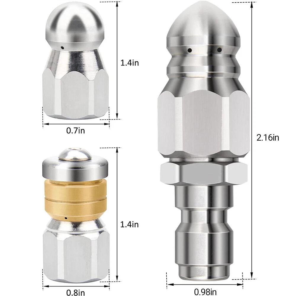 3X Nozzles High-Pressure Sewer Drain Cleaning Nozzle-Sewer Jetter,1/4 Connetors