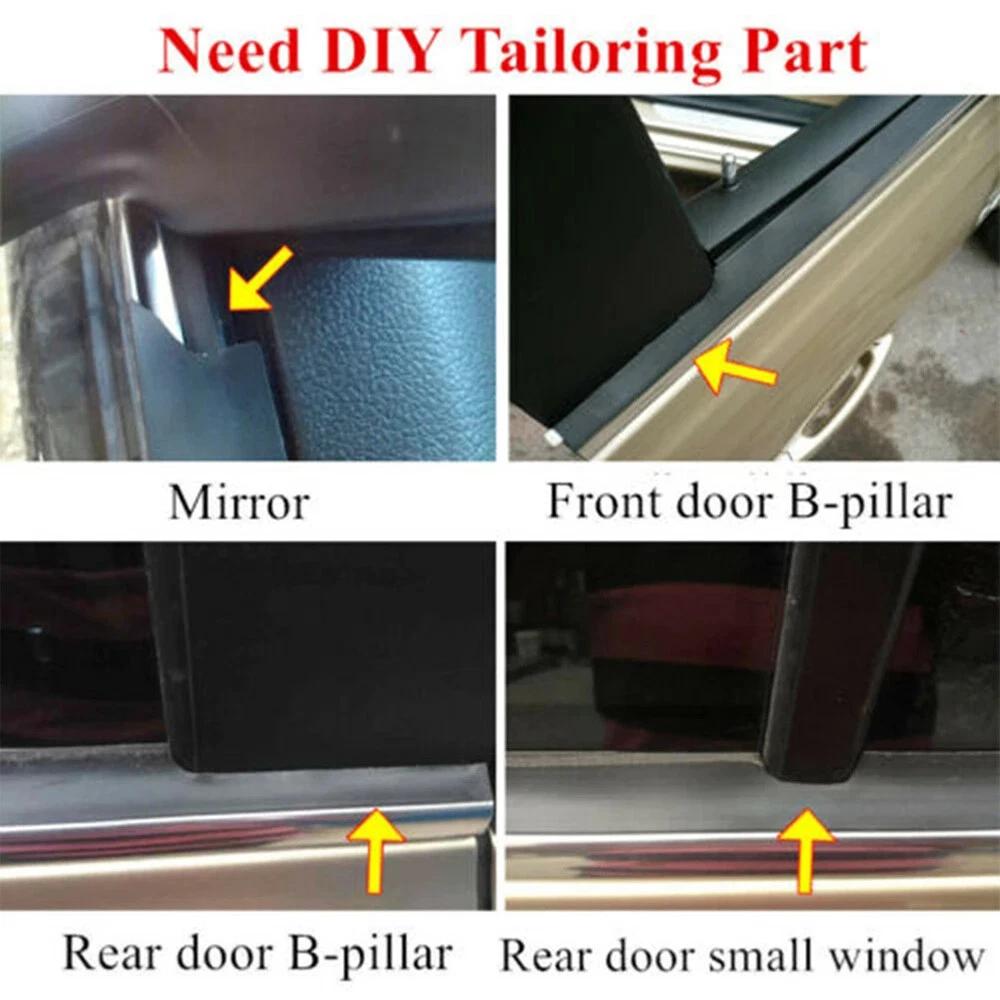 The rearview mirror, B-pillar and rear door small windows need to be DIY cut. It is recommended to compare the original car position first, then mark the line, and then cut it.