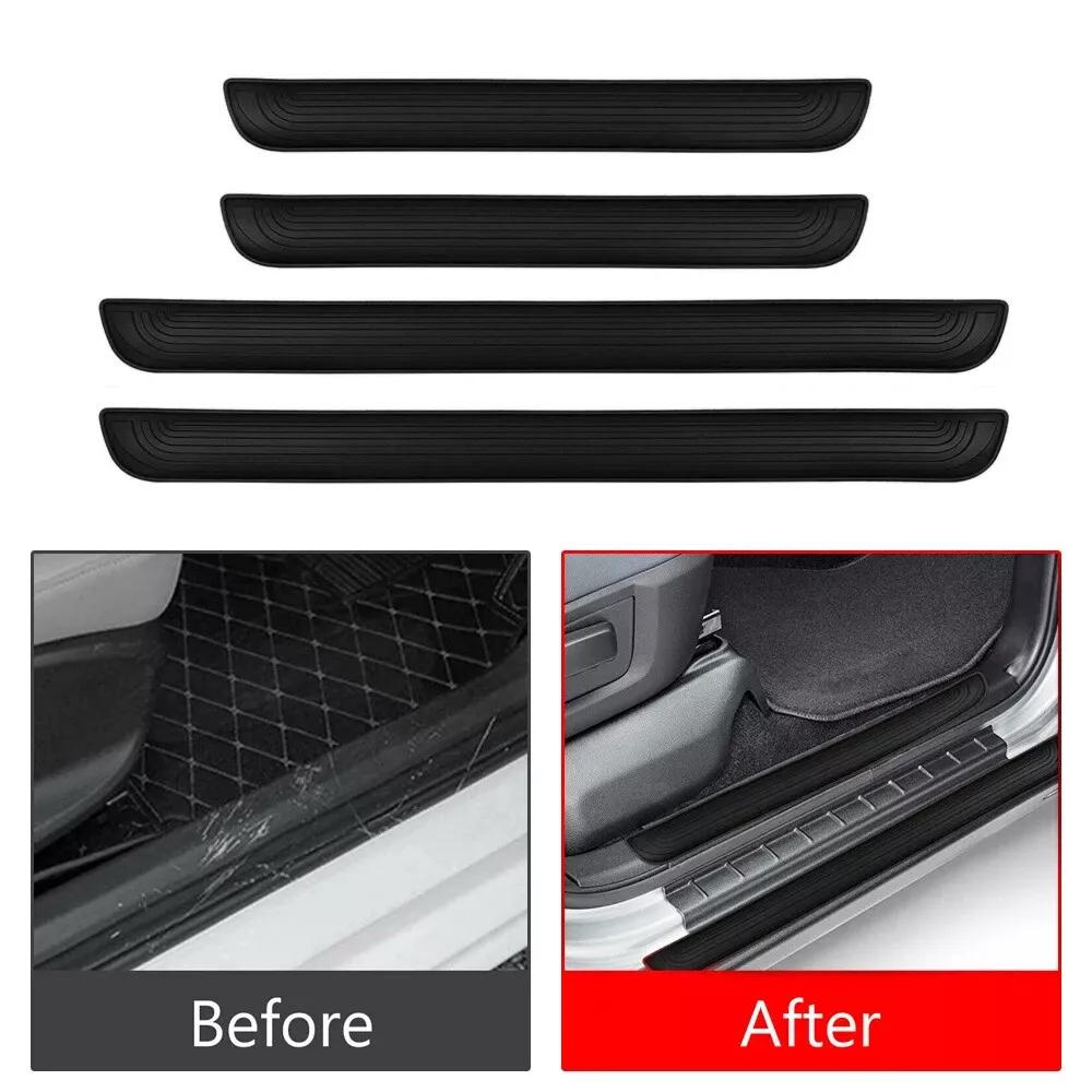 4pc Rubber Car Door Scuff Plate Sill Cover Panel Step Protector Guards Universal