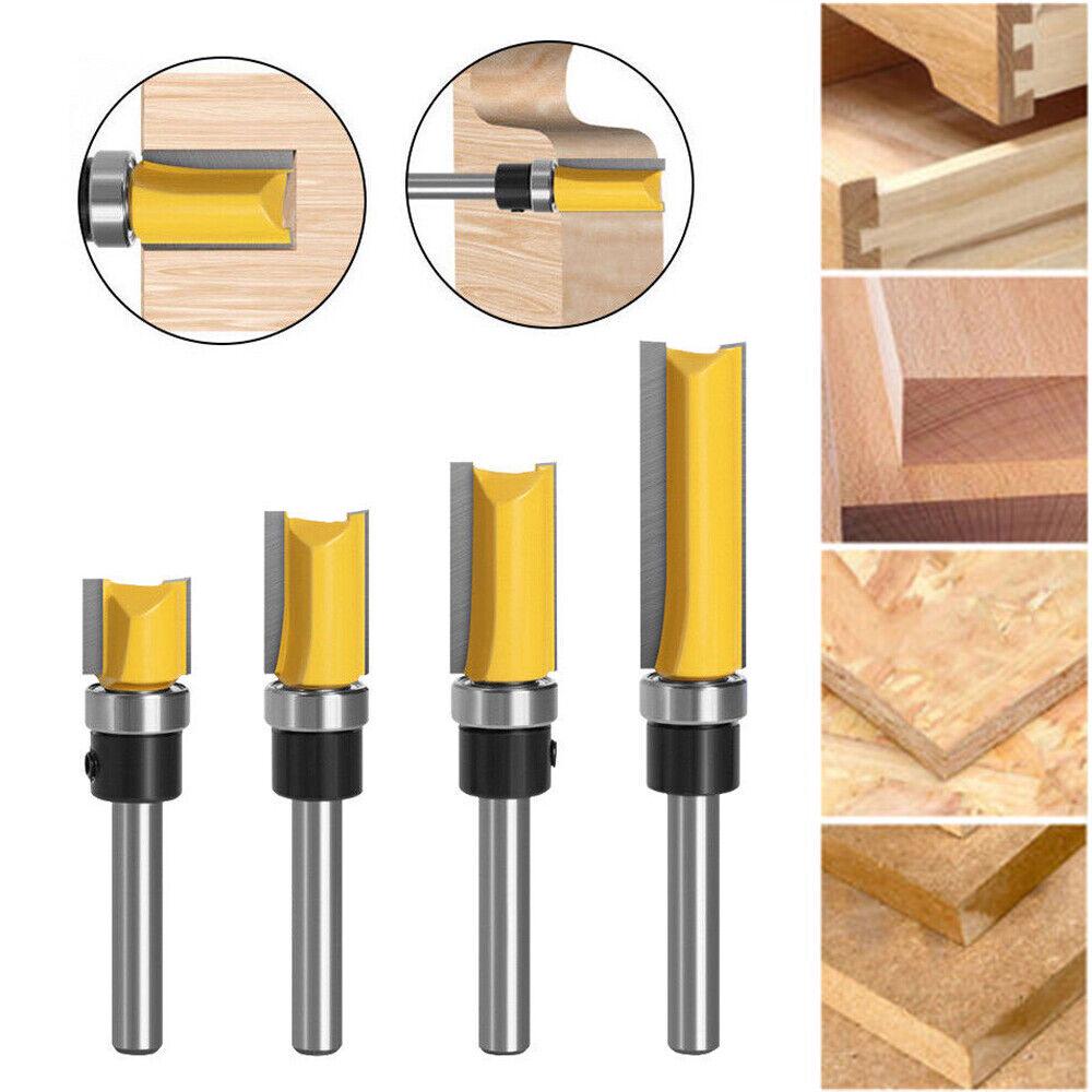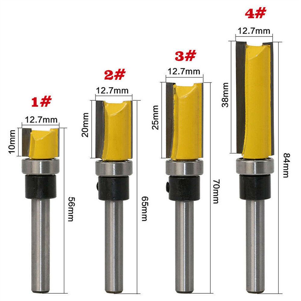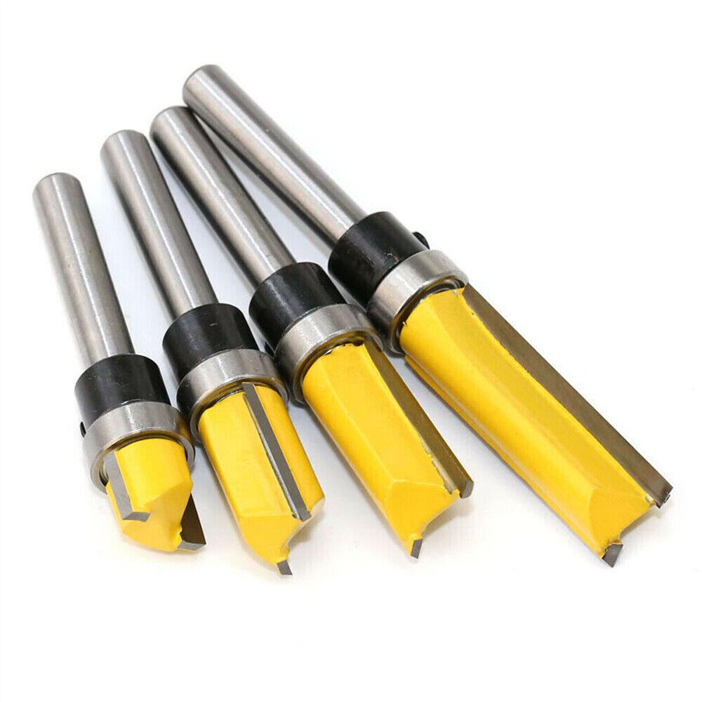 4PCS 1/4”Shank Top Bearing Flush Trim Pattern Router Bit Set Milling Cutter Kit