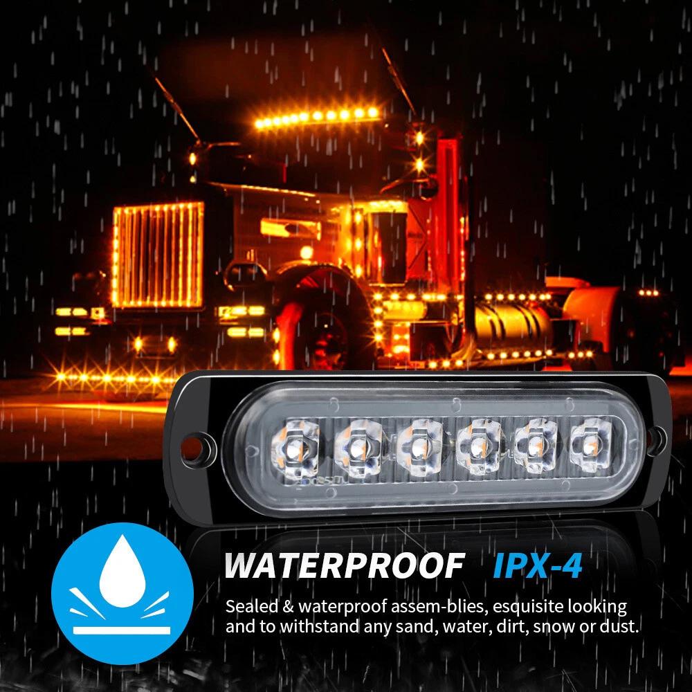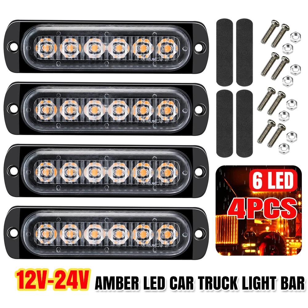 4PCS Amber 6 LED Car Truck Emergency Beacon Warning Hazard Flashing Strobe Light