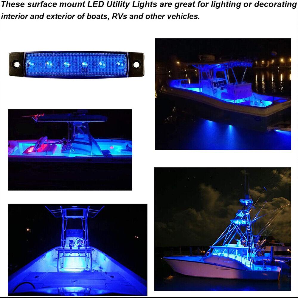 4X Marine Boat 6 LED Lamp Blue Cabin Deck Courtesy Light Stern Transom Lights