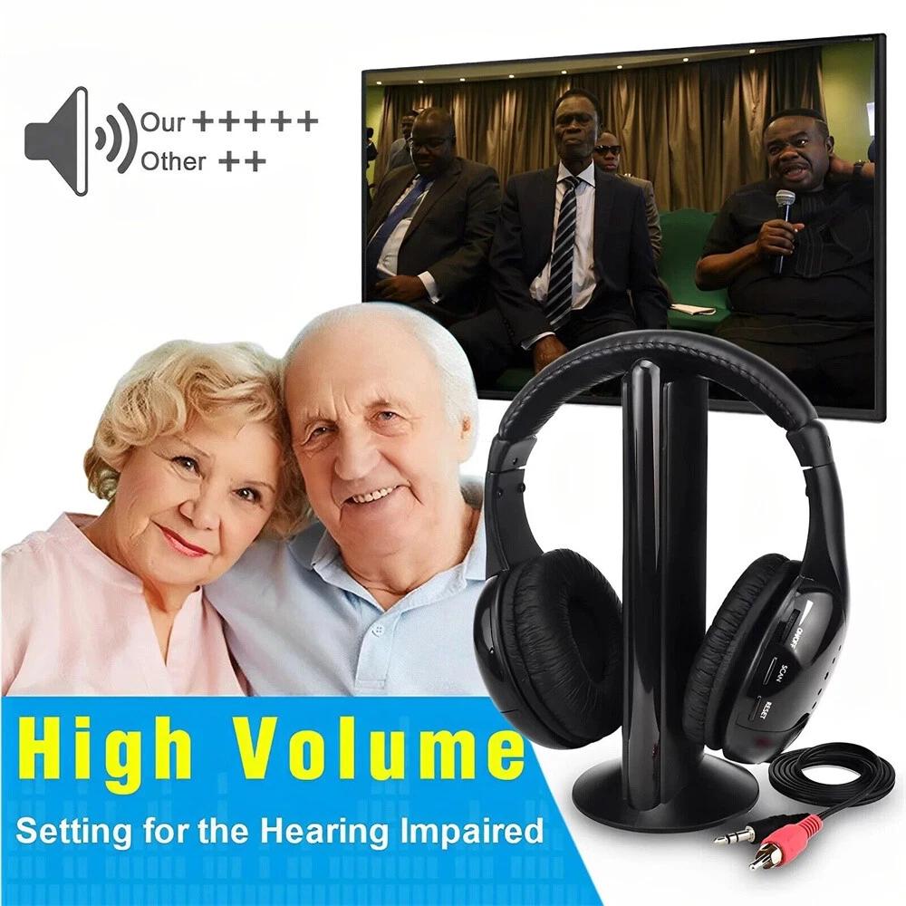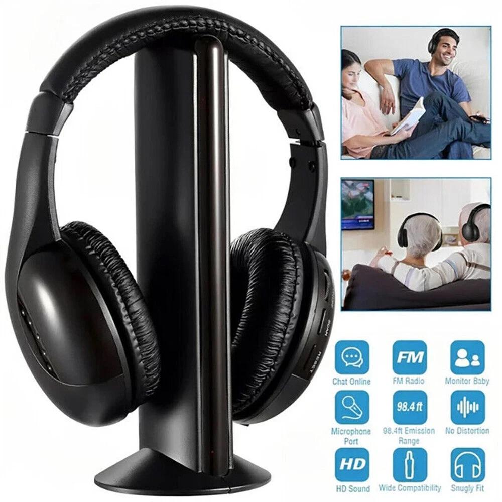 5 in 1 Cordless Headphones Wireless Earphone FM Radio TV Headset Wired Headphone