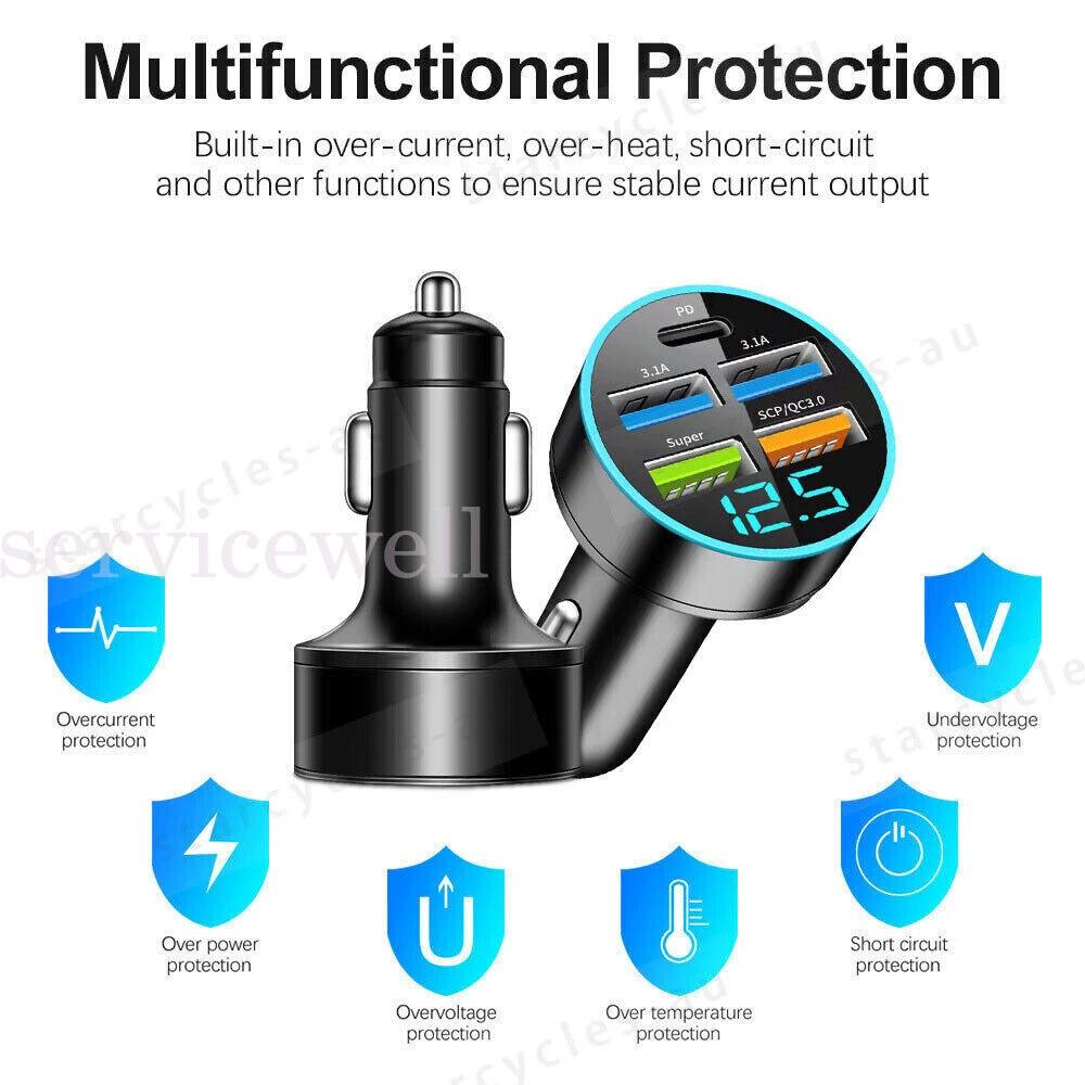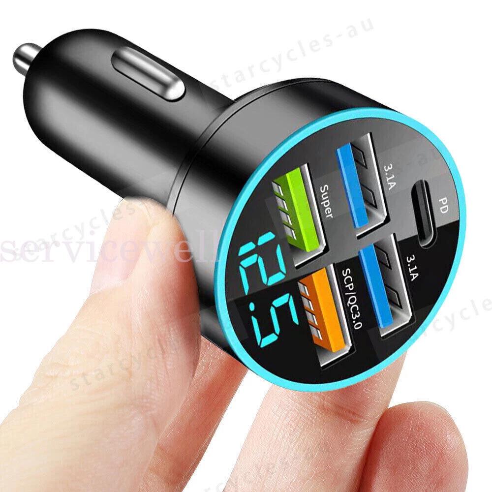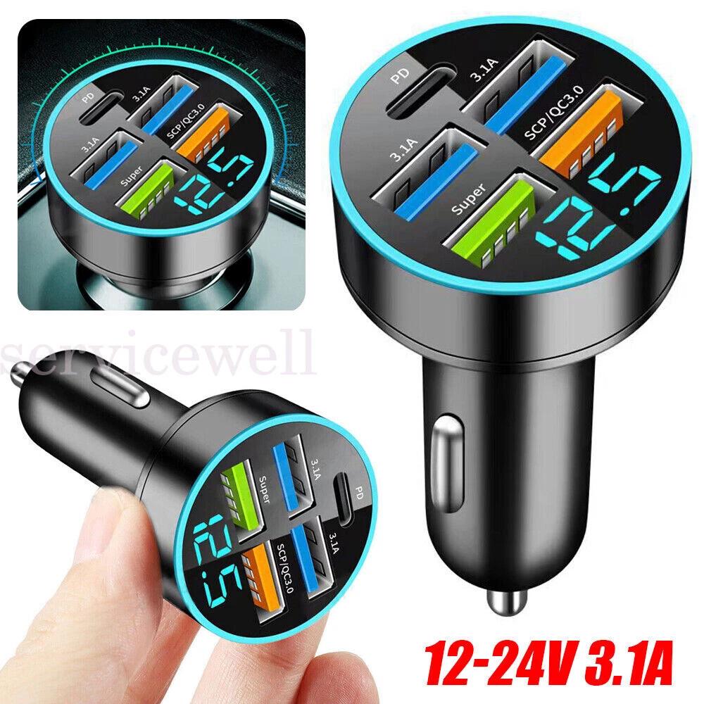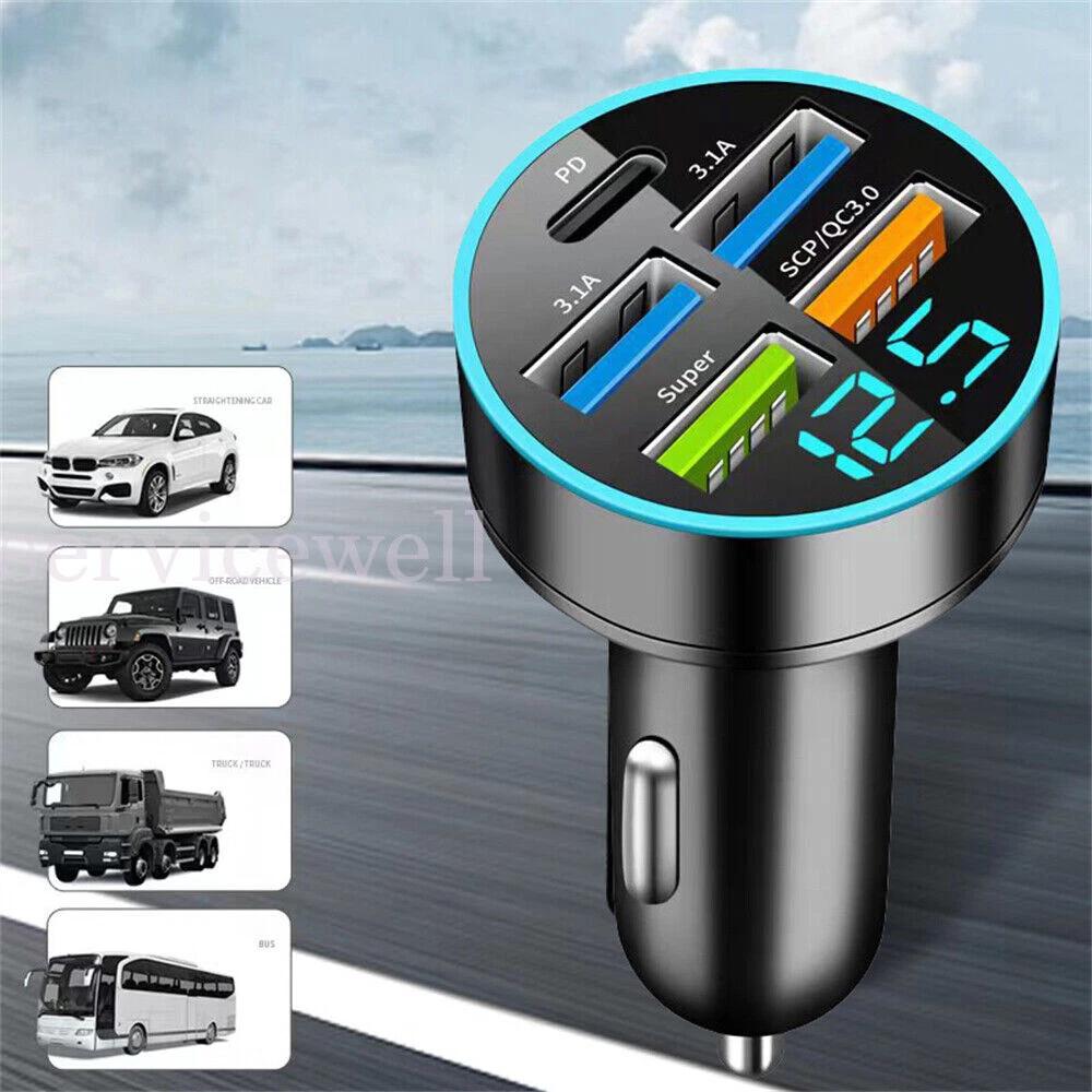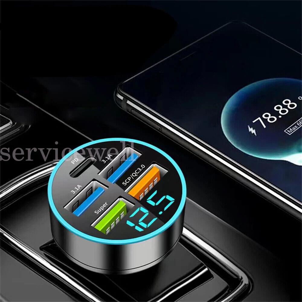 5 Port Car Phone Fast Charger QC3.0 USB Type C PD Adapter For Samsung iPhone