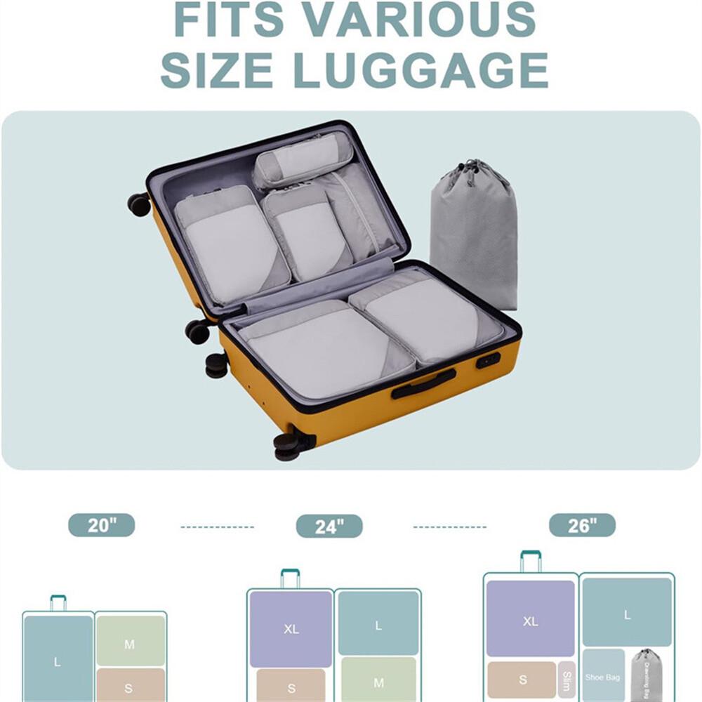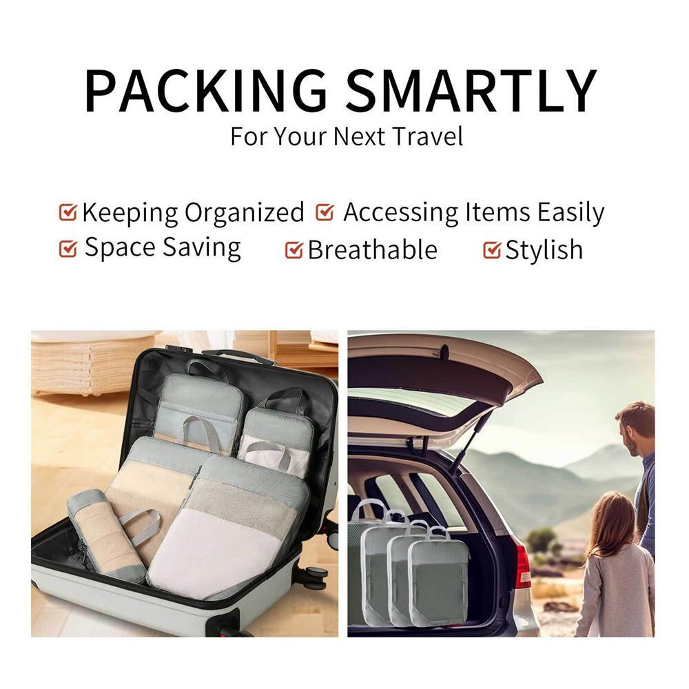 – Multifunctional Design The 6 pcs packing cubes set is not only a travel organizer for suitcases but also perfect for camping, gym, beach, business trips, or weekend getaways, convenient to organize. Simply divide your travel accessories and essentials. The compression packing cubes work very well for a backpack organizer, suitcase organizer, or luggage organizer.