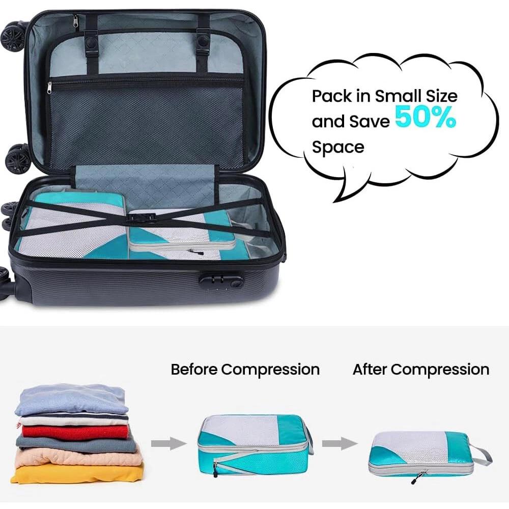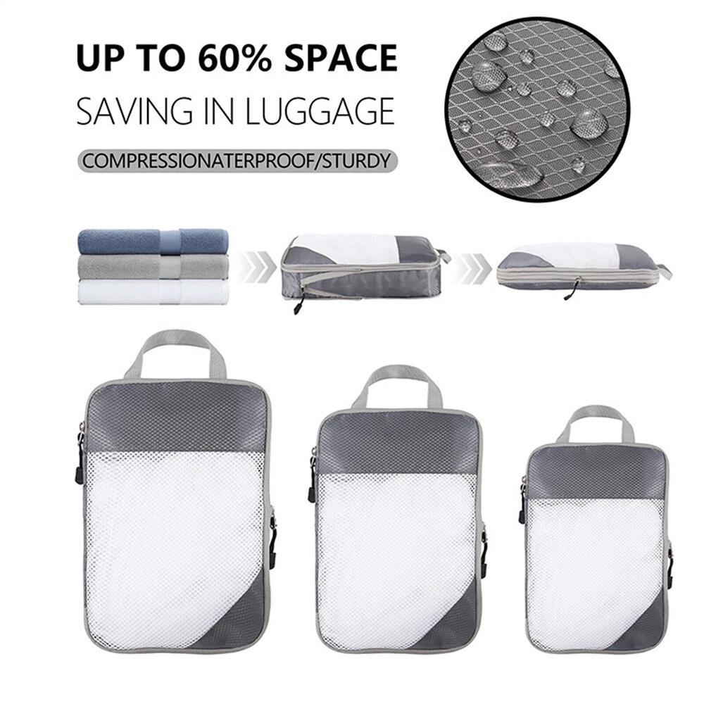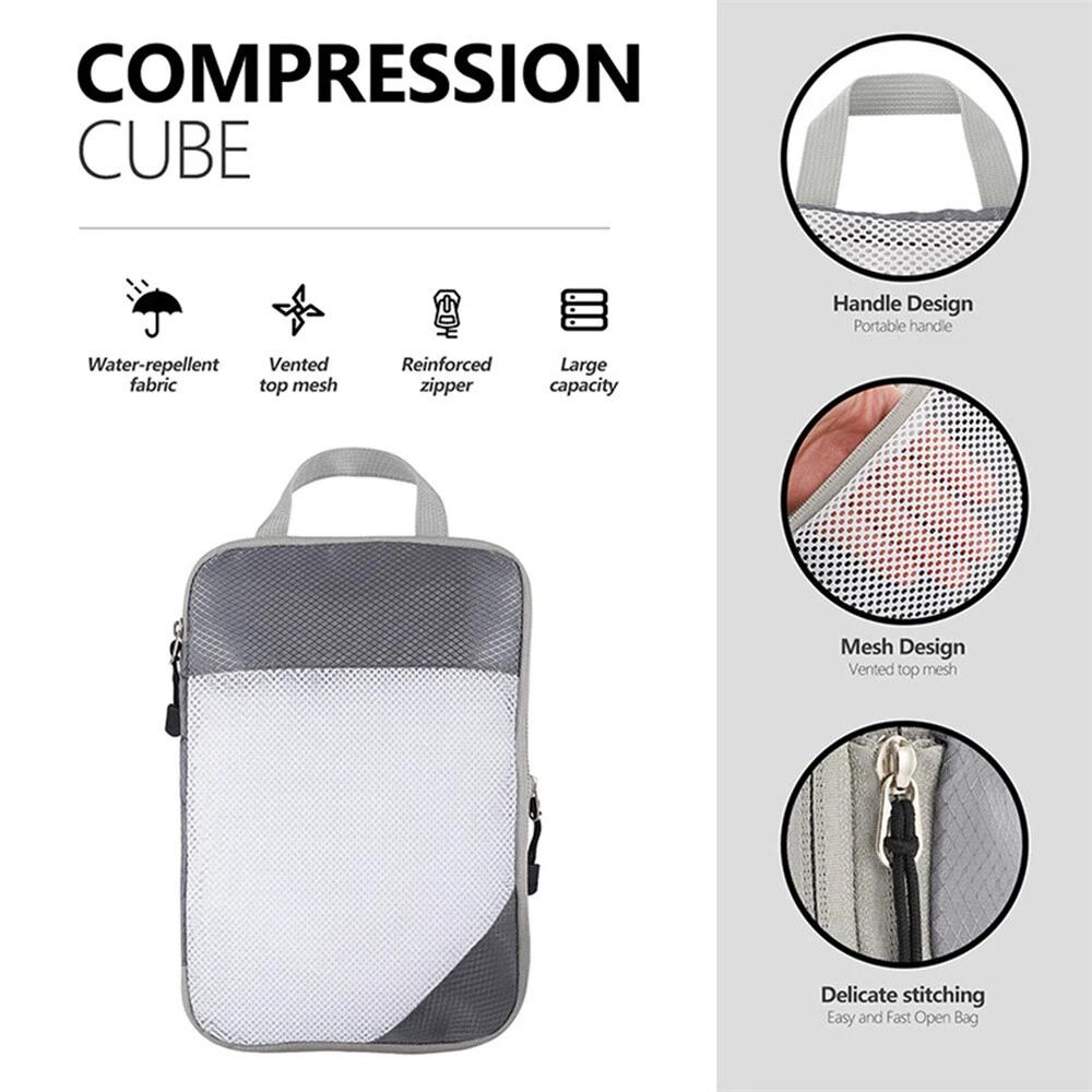 6Pcs Compression Packing Cubes Expandable Storage Travel Luggage Bags Organizer