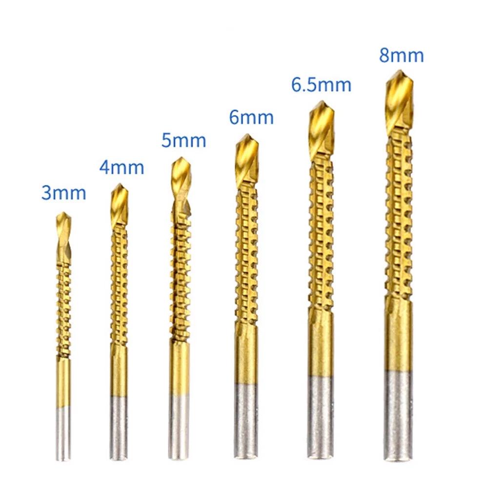 6PCS HSS Titanium Drill Bit Tool Set,3-8mm Twist Drill,For Wood Metal Grooving