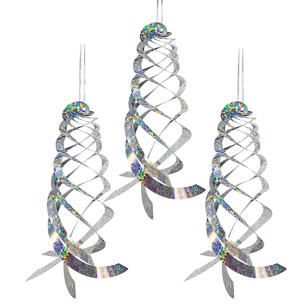 HUMANITARIAN SOLUTIONS: The Silver Mylar Spiral Reflectors is made of safe, non-toxic plastic material that will not harm the environment and animals. Instead of frightening and harming birds, our bird repellent deterrent device humanely scares them away by reflecting visual light.