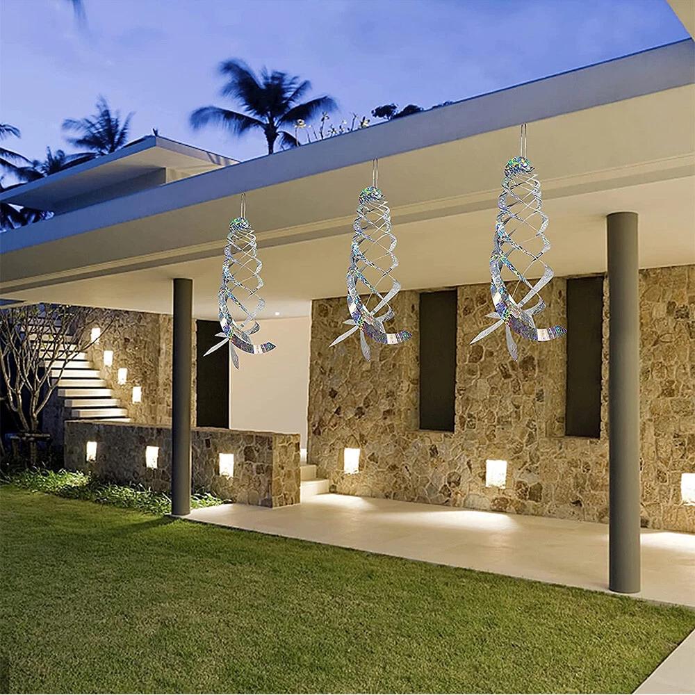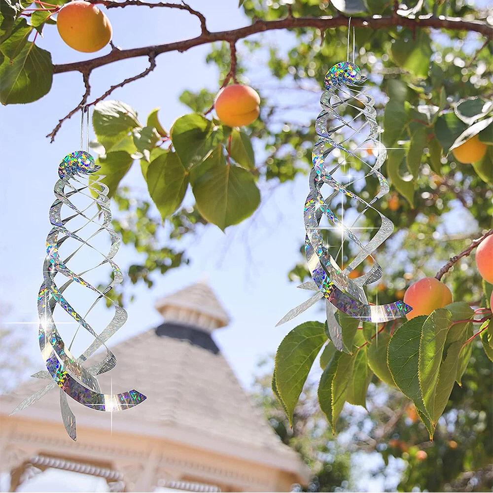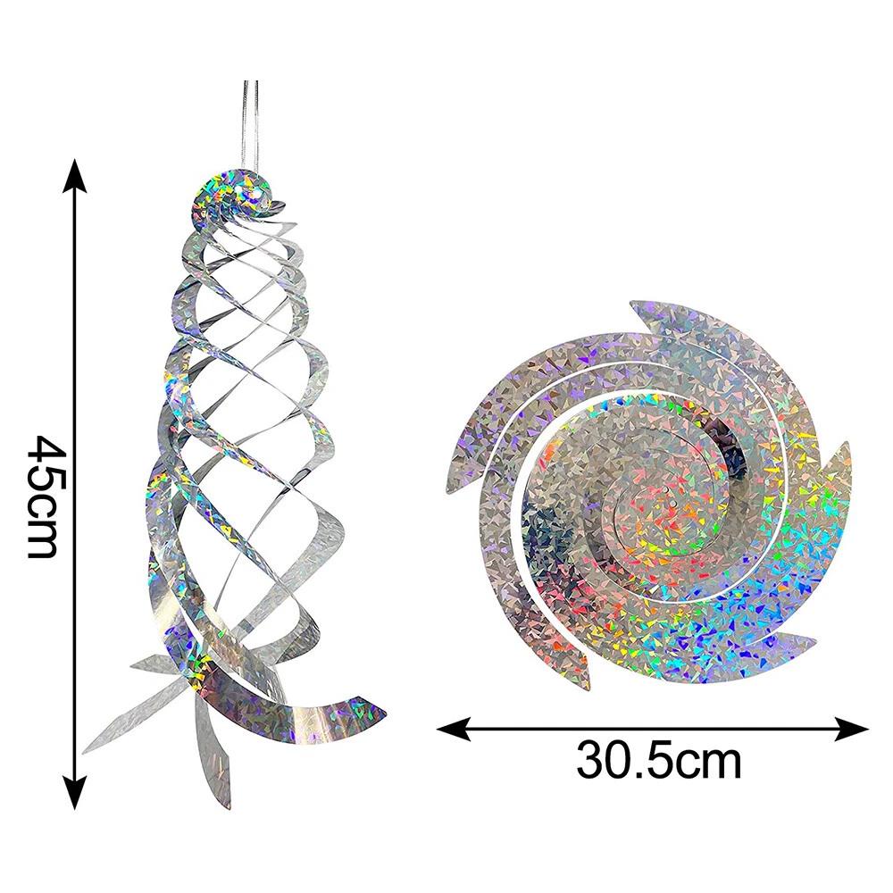 BIRD REPELLENT SPIRAL REFLECTORS: Our visual reflective ornamental spinner uses wind motion and light reflections to keep birds away coming from any angle. Shiny reflective Mylar pinwheels can rotate easily in the breeze, protect your garden, farm, and lawn by creating a bright flash that scares away birds.