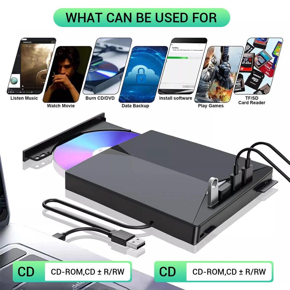 7 In 1 External CD DVD Drive USB 3.0 SD Disc Player Burner Writer For Laptop Mac