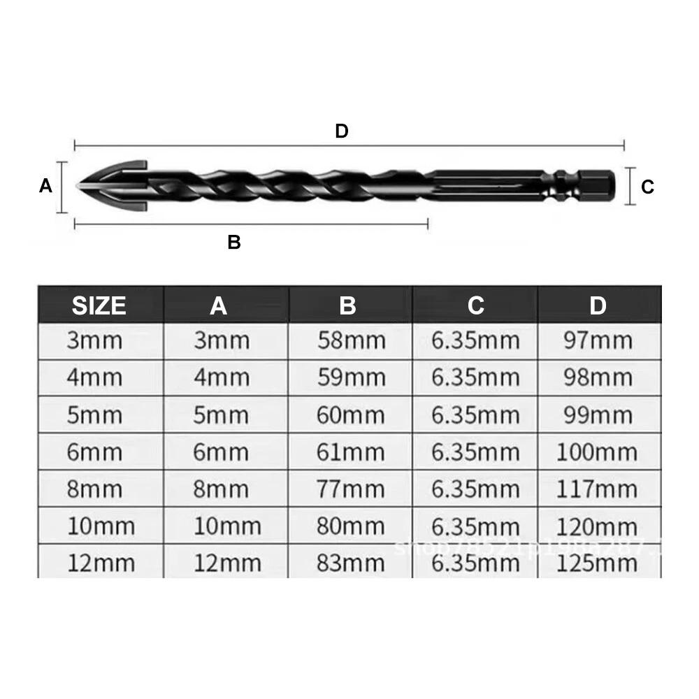 – The four-edge cross bit has a Concentrated Stress Point and can drill faster and more accurately without damaging the material.