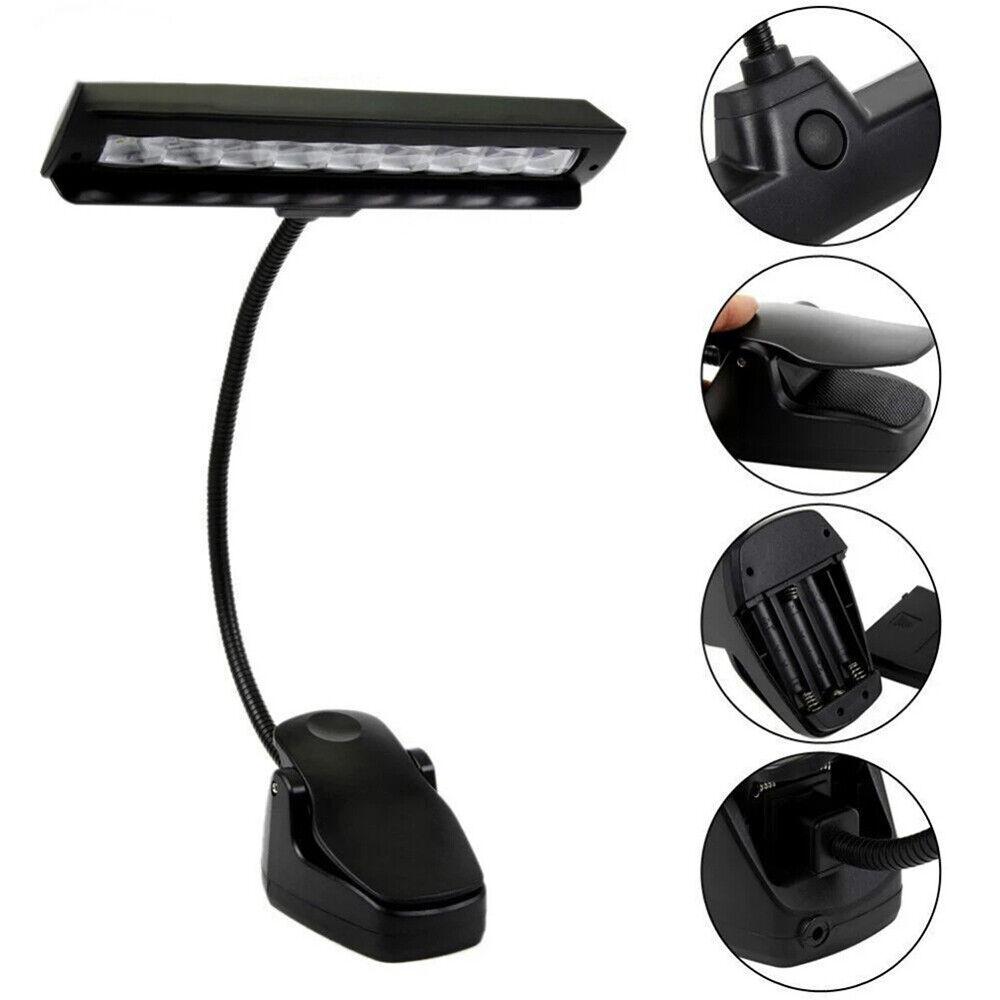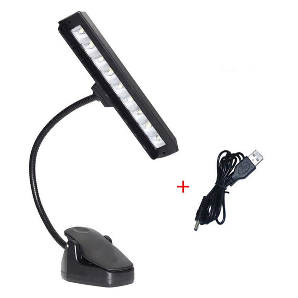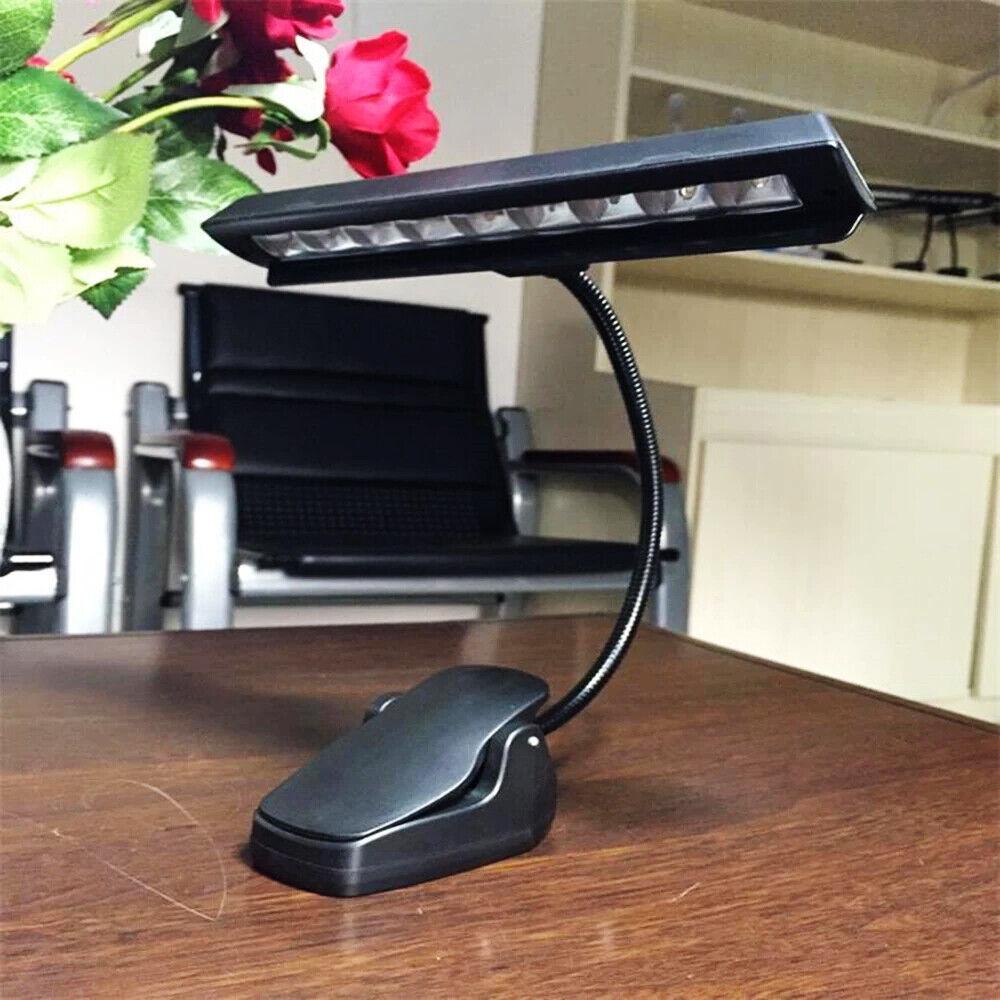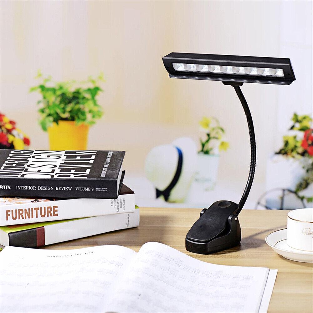 9 LED Flexible Clip-on Music Stand Reading Light Bed Table Desk Lamp Black