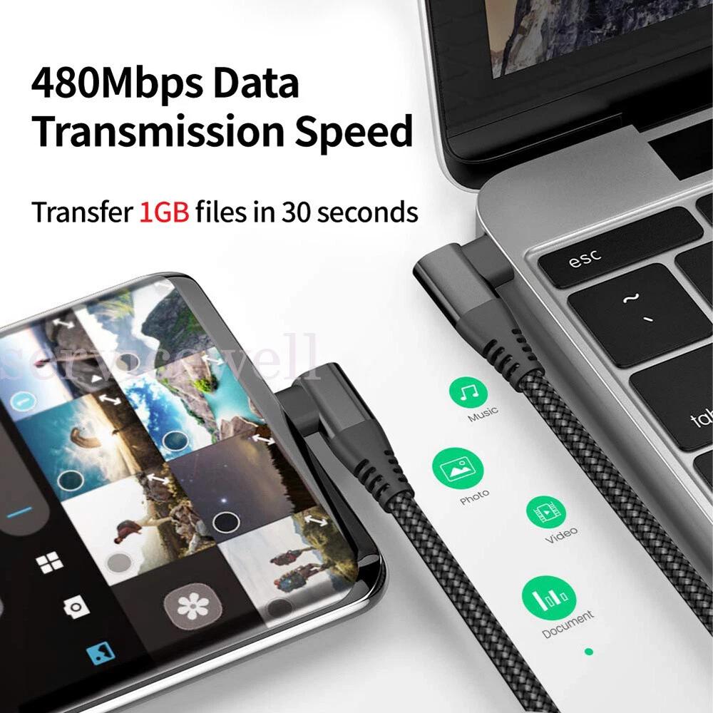 90 Degree Data Line Right Angle PD 60W Fast Charging USB C to USB Type C Cable