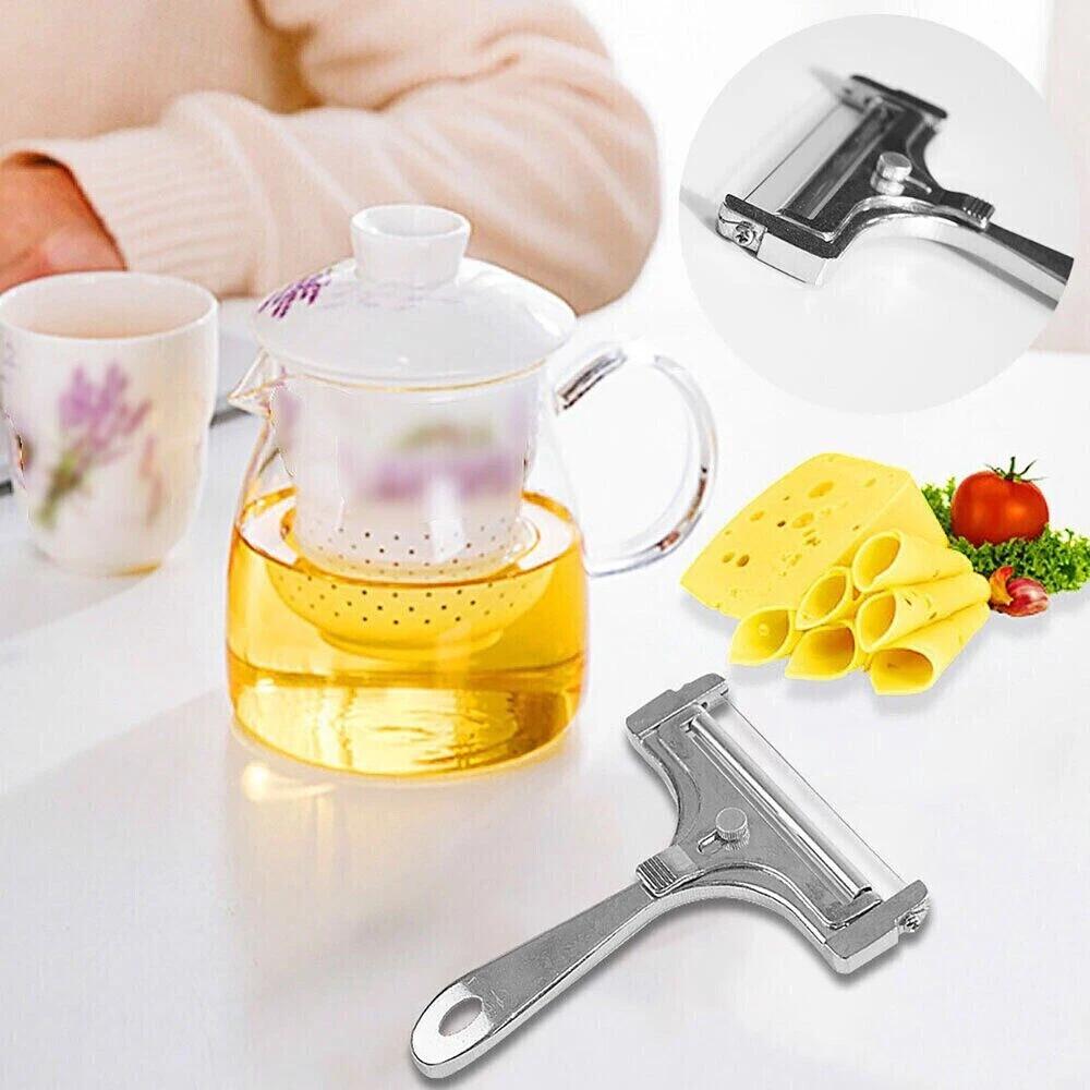 – With an adjustable knob, easy to adjust to cut different thickness of cheese.