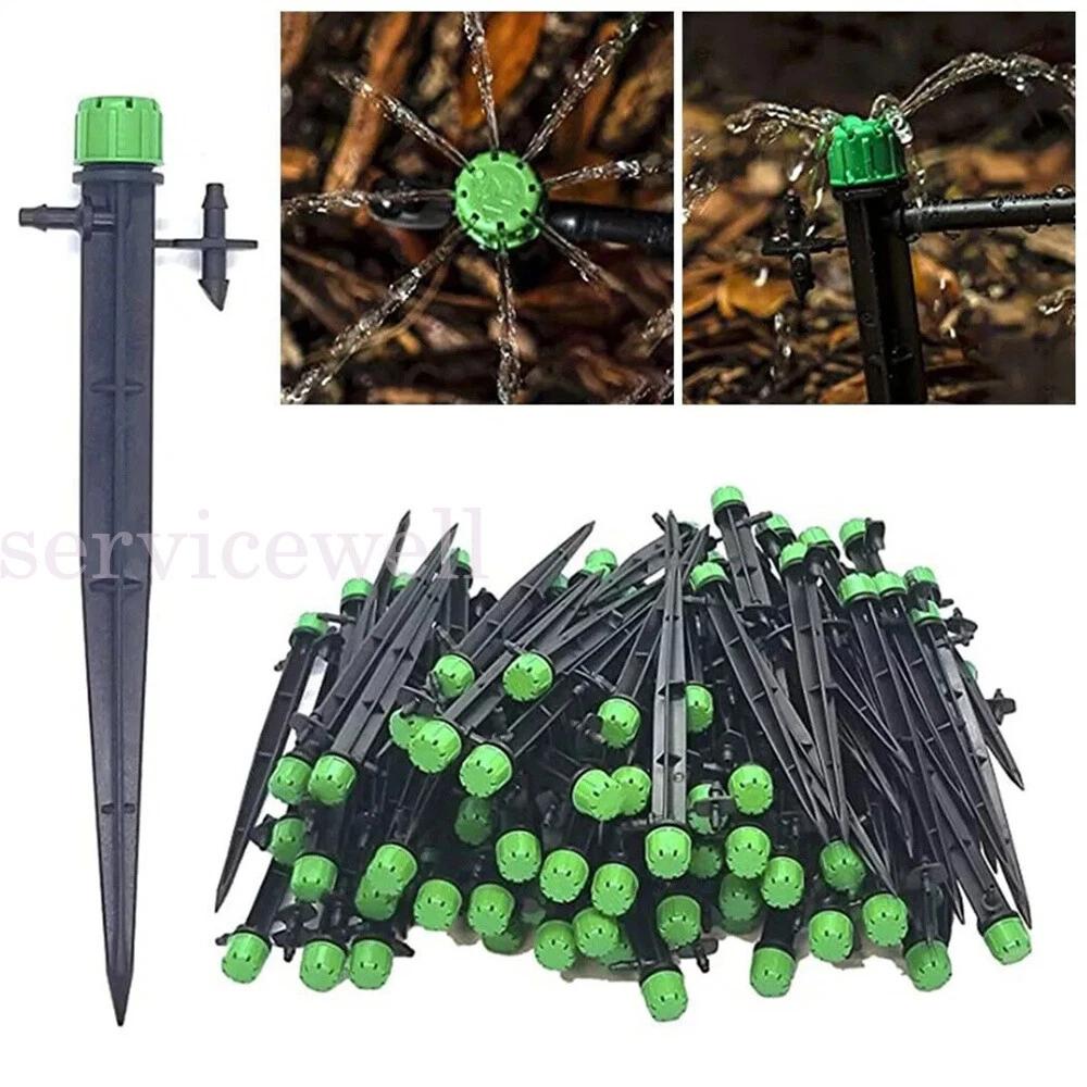 Up 100x Adjustable Water Flow Polypropylene Nozzle Stake Drip Sprinklers Garden