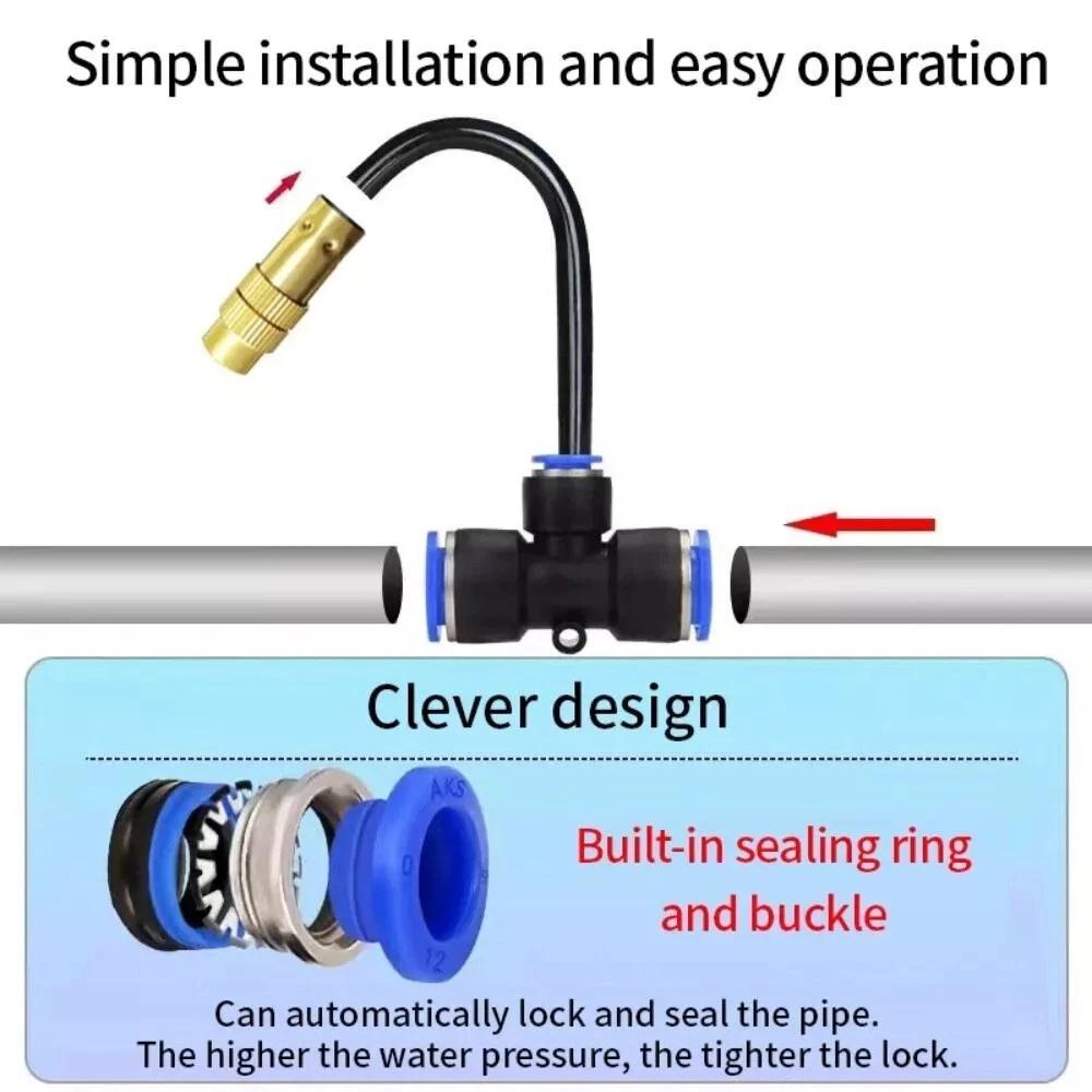 -Drip system kit is equipped with connectors: universal faucet connector and tubing quick connector. With a easy installation, insert fittings and dripper, you can start watering the plants right away without digging or plumbing skills.