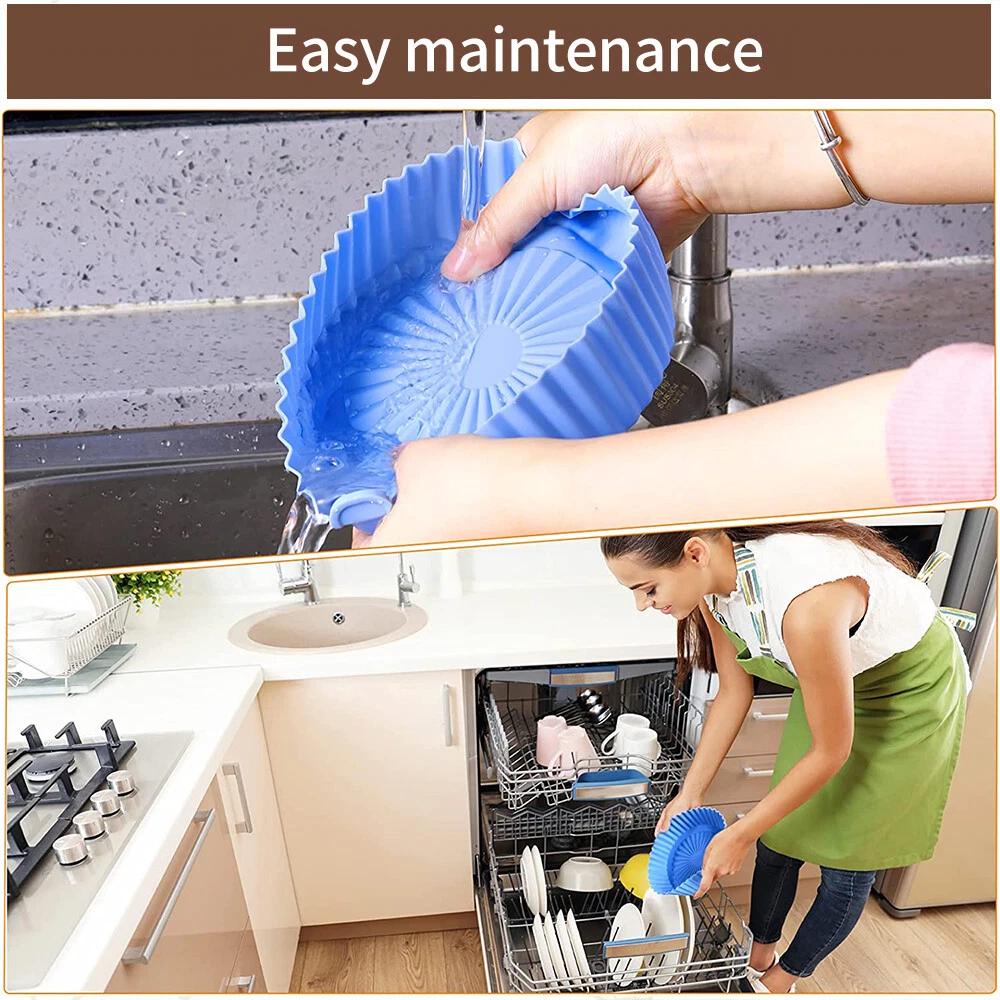 Safe material: For air fryer pot liner is made of silicone, which is eco-friendly, heat-resistant, wearable, not easy to break or deform.
