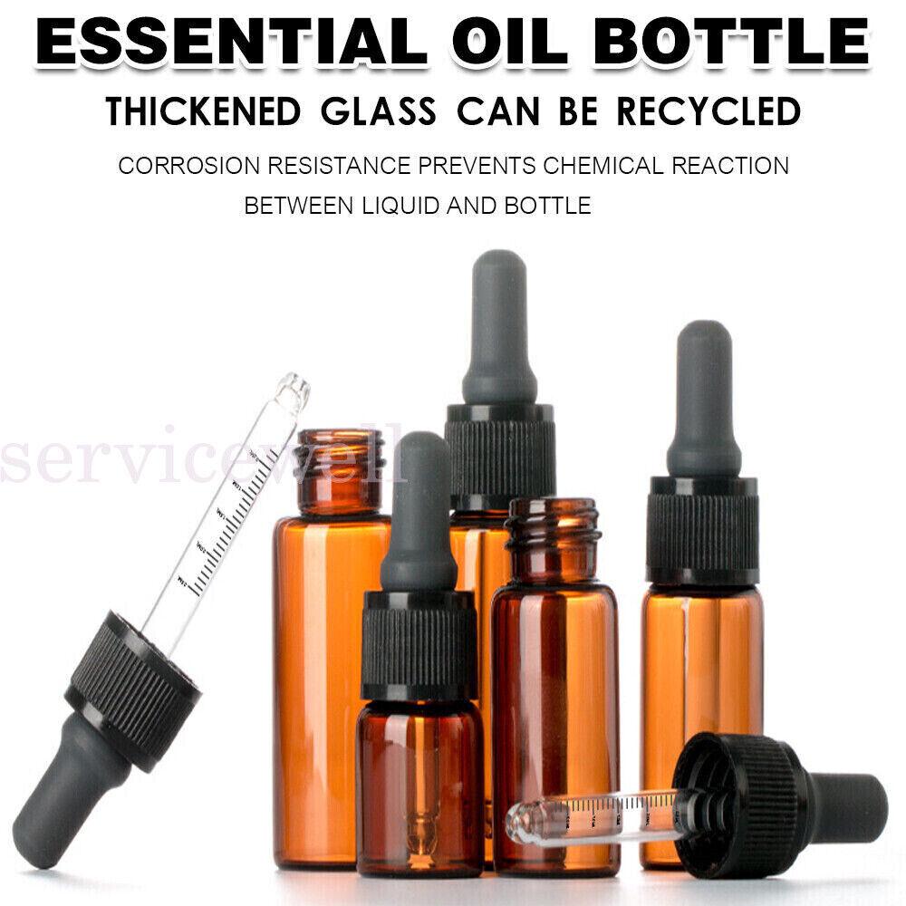1/10×10-100MLAmber Glass Liquid Dropper Reagent Eye Pipette Essential Oil Bottle