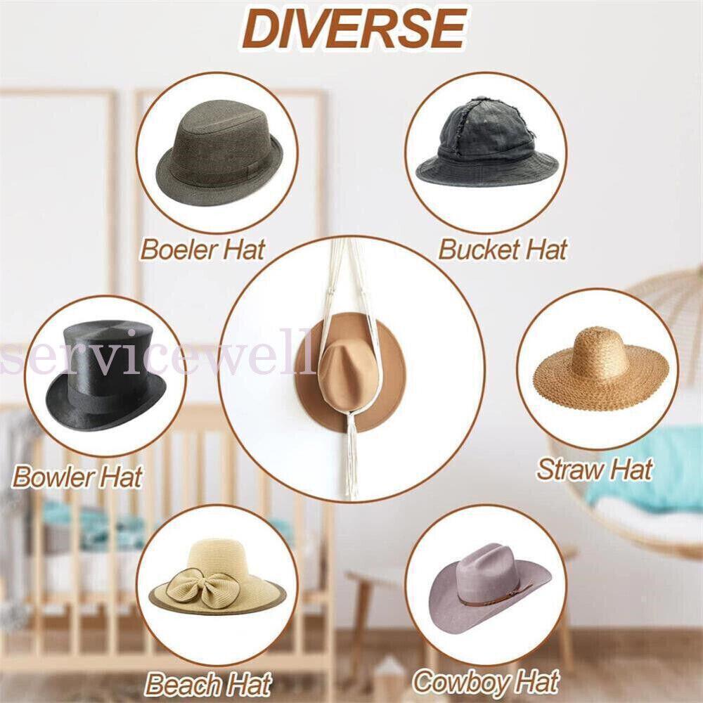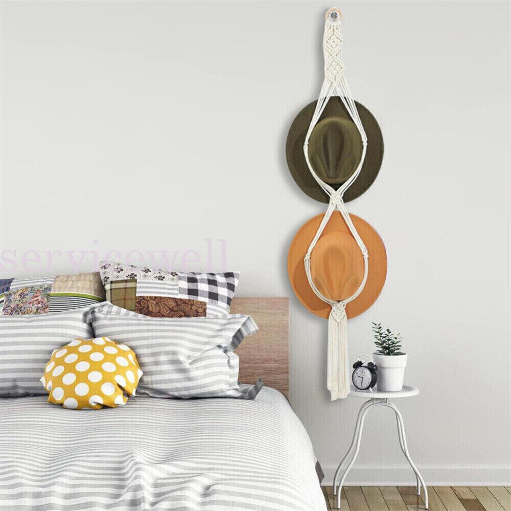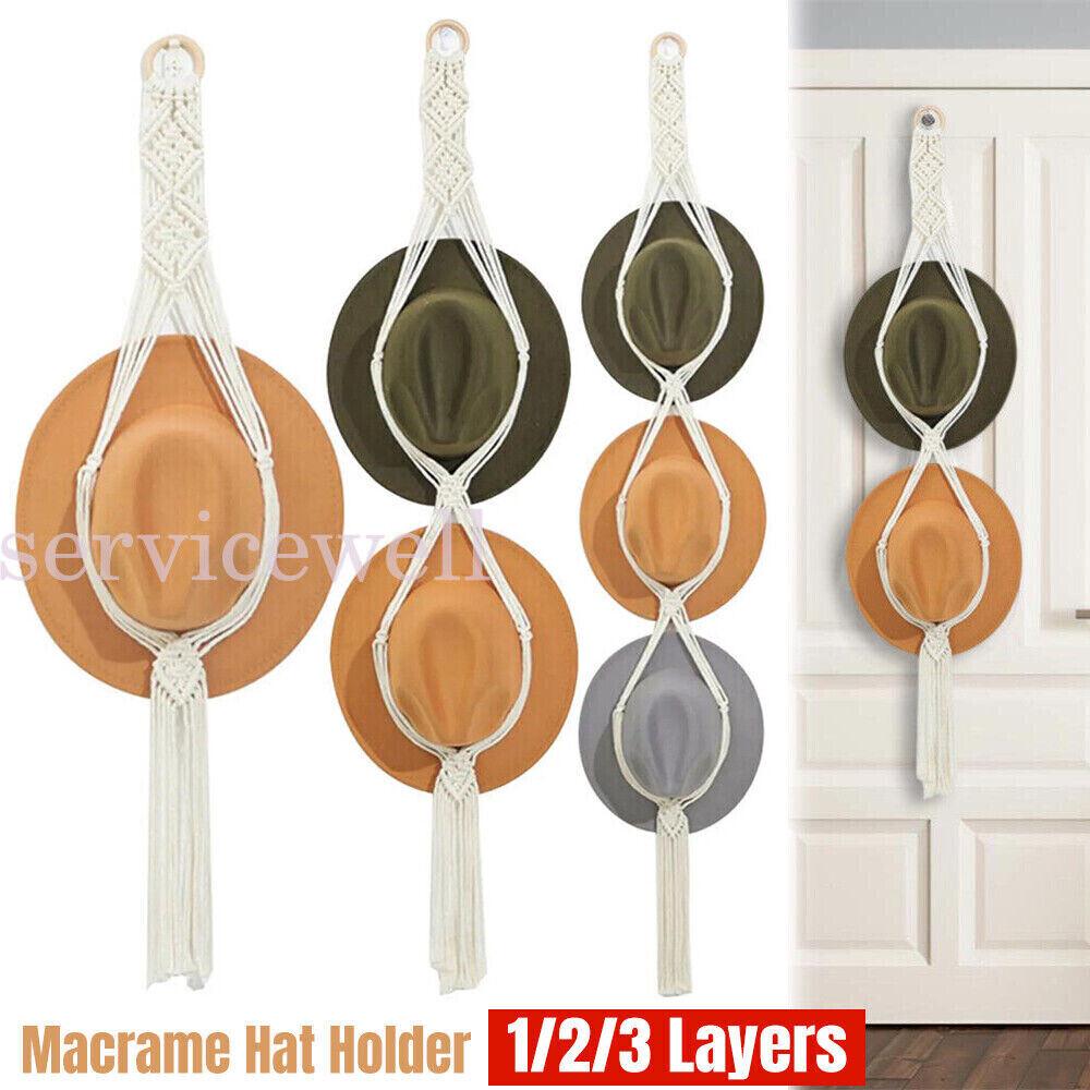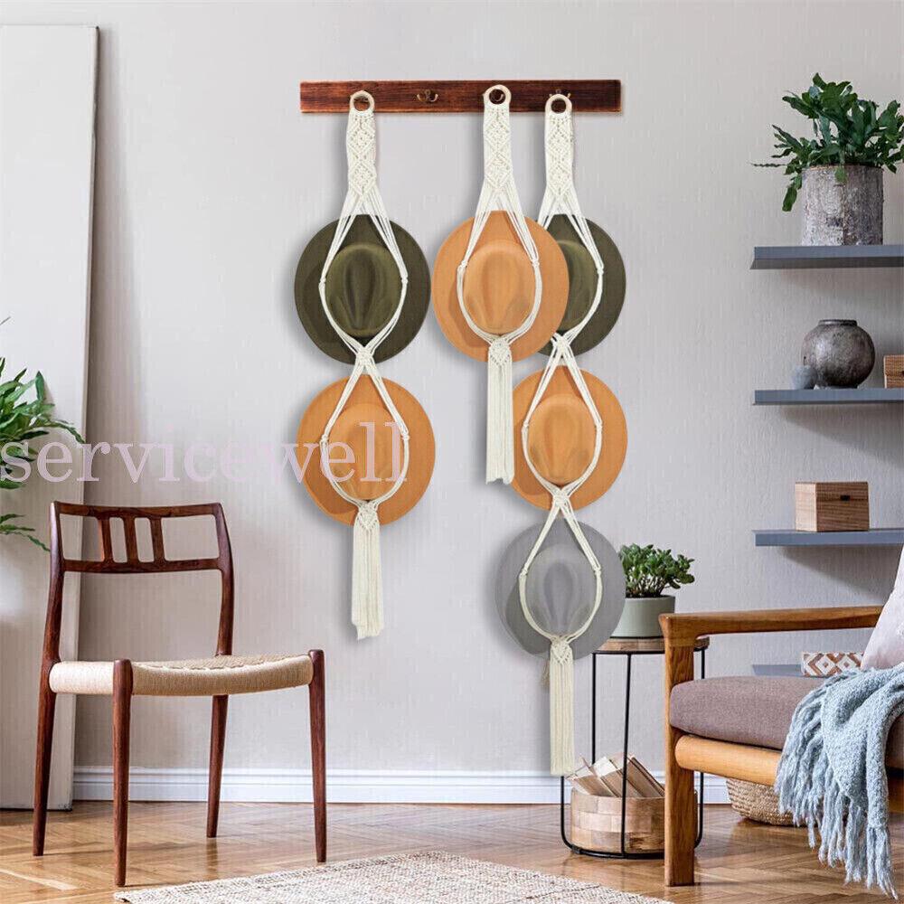 1-3X Boho Hand-Woven Macrame Hat Display Rack Hanging Cap Holder Hat Rope hanger