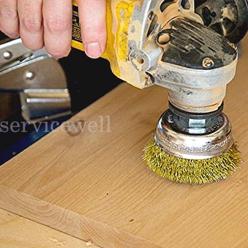 Brass Wire Brush Cup Wheel Set For Drill Rotary Tool Metal Rust Removal Cleaning