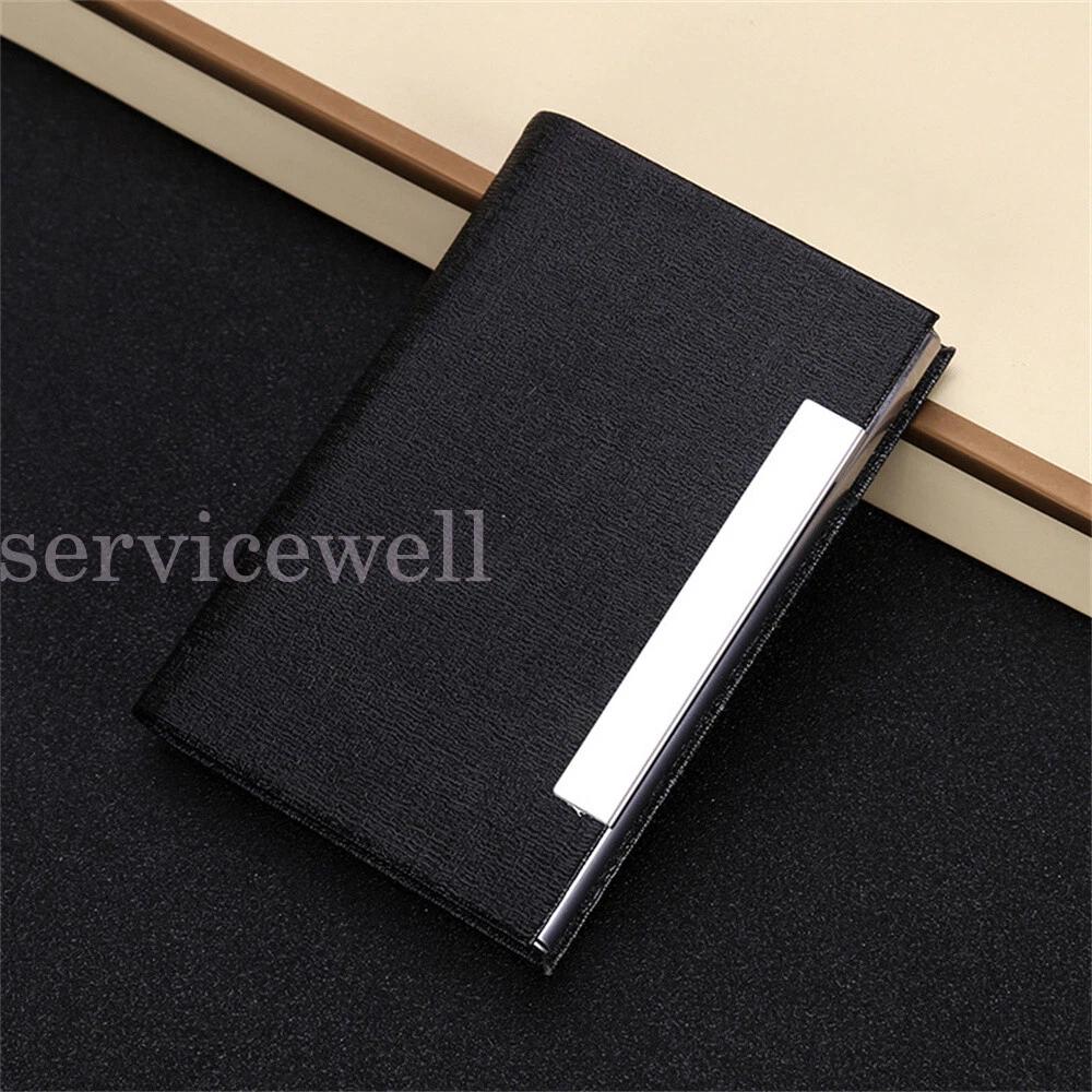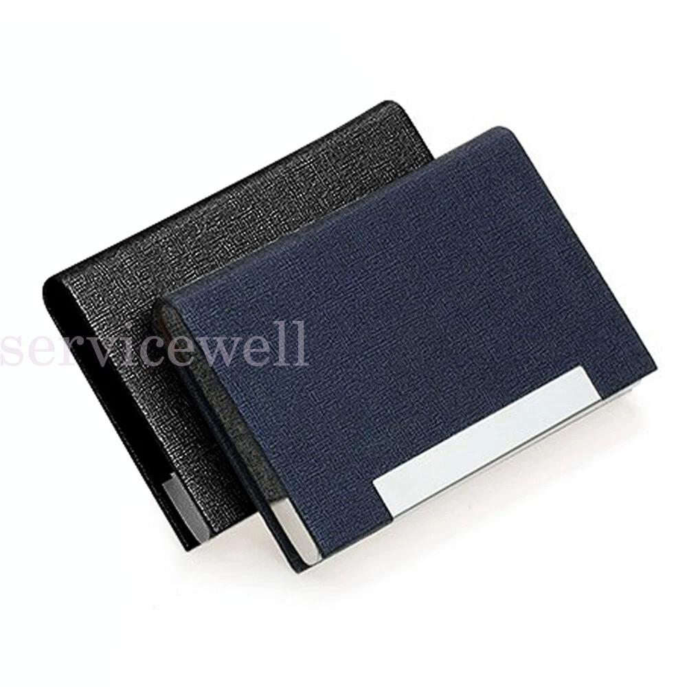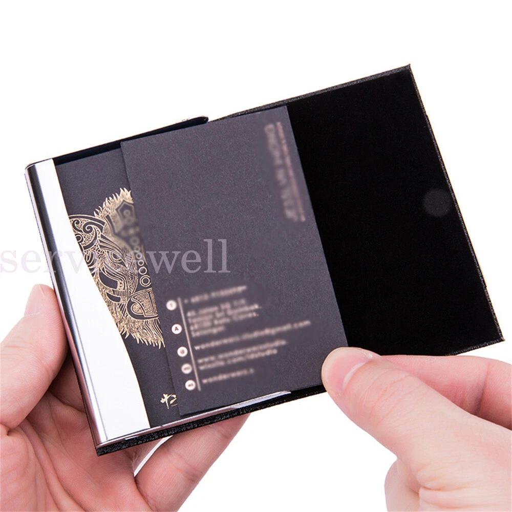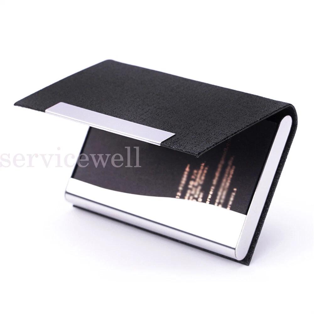 Business Card Holder Case Cases Cover Holders Organiser Metal Black PU Leather