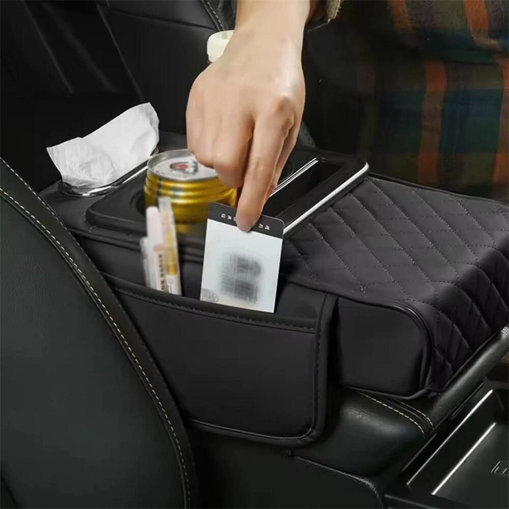 Car Armrest Cushion with Storage Leather Center Console Pad with Tissue Holder
