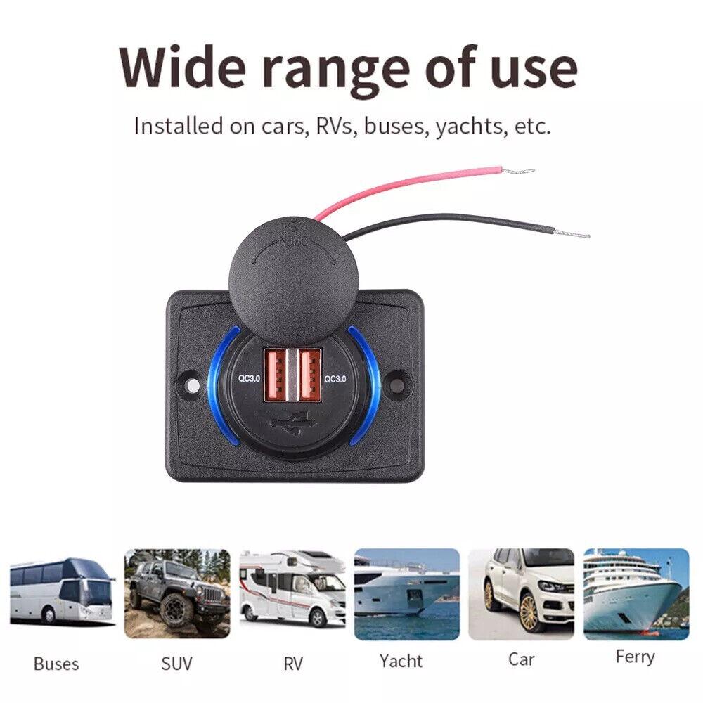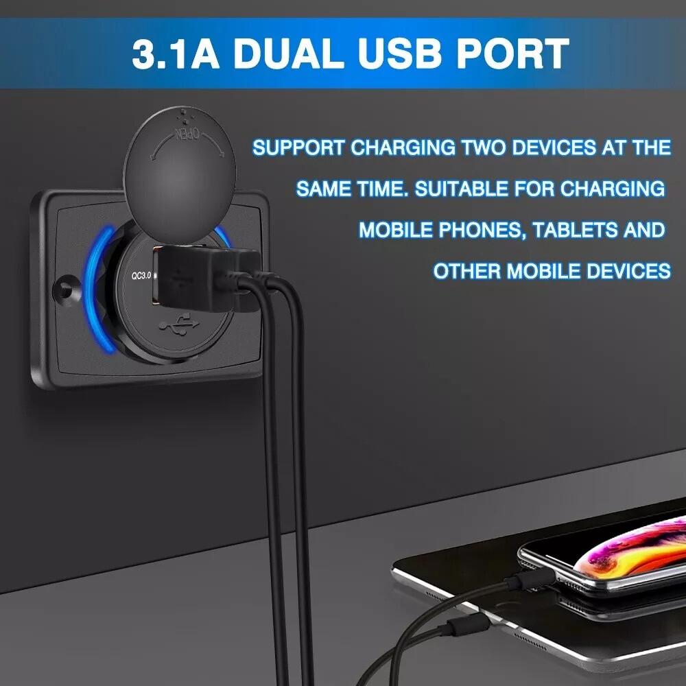 Car Fast Charger Socket Power Dual USB Port Outlet Panel Caravan RV 3.1A 12/24V