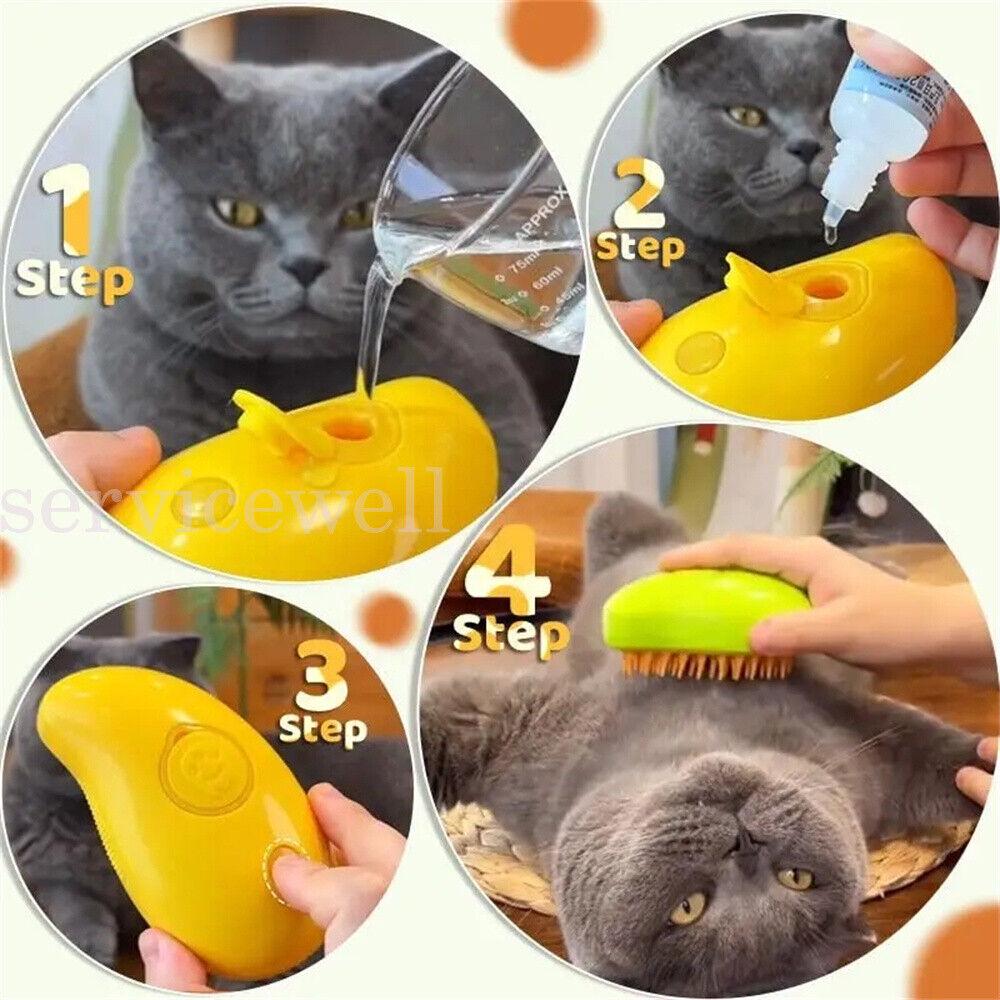 1/2xCat Steam Brush 3 In 1 Pet Electric Spray Massage Comb Pet Hair Removal Comb