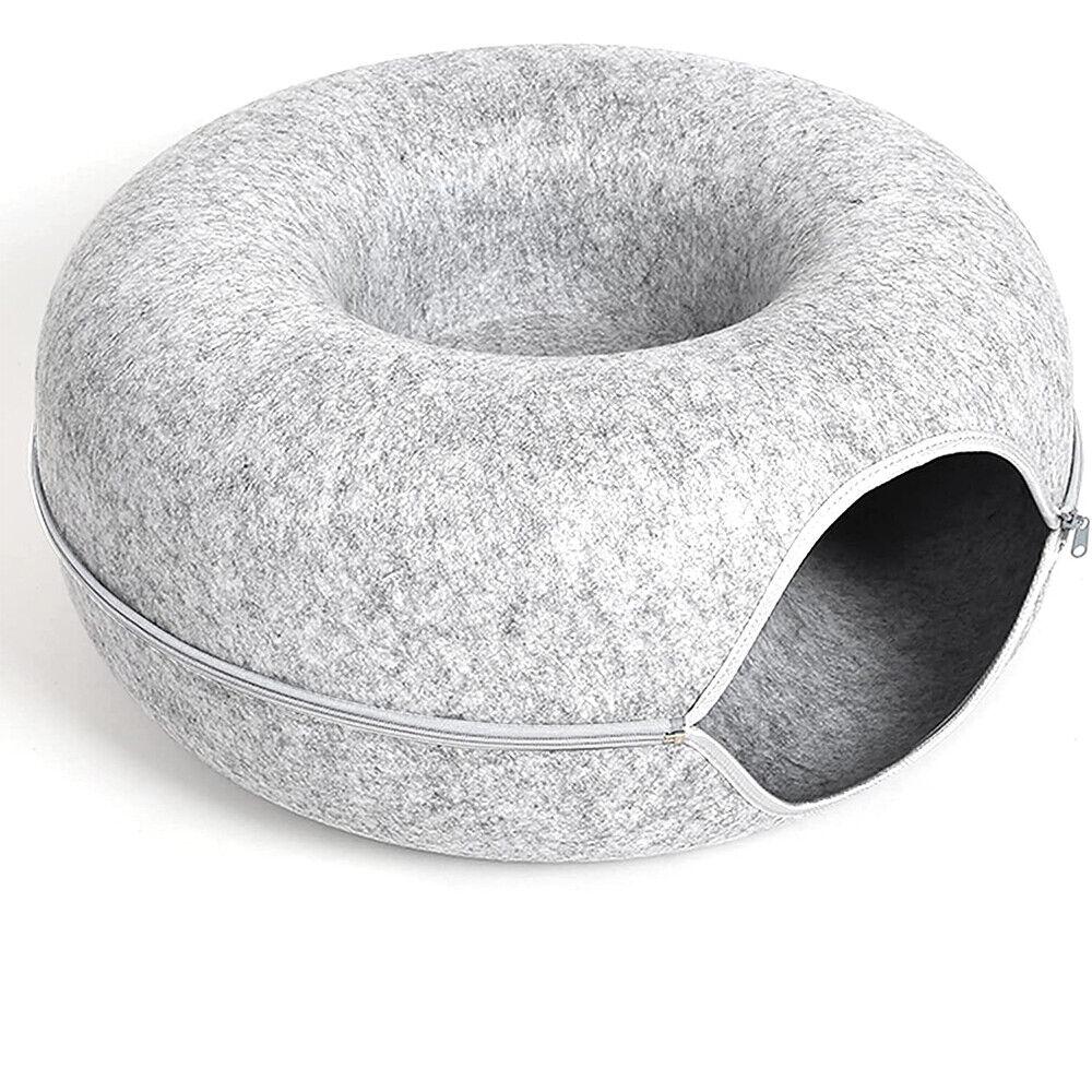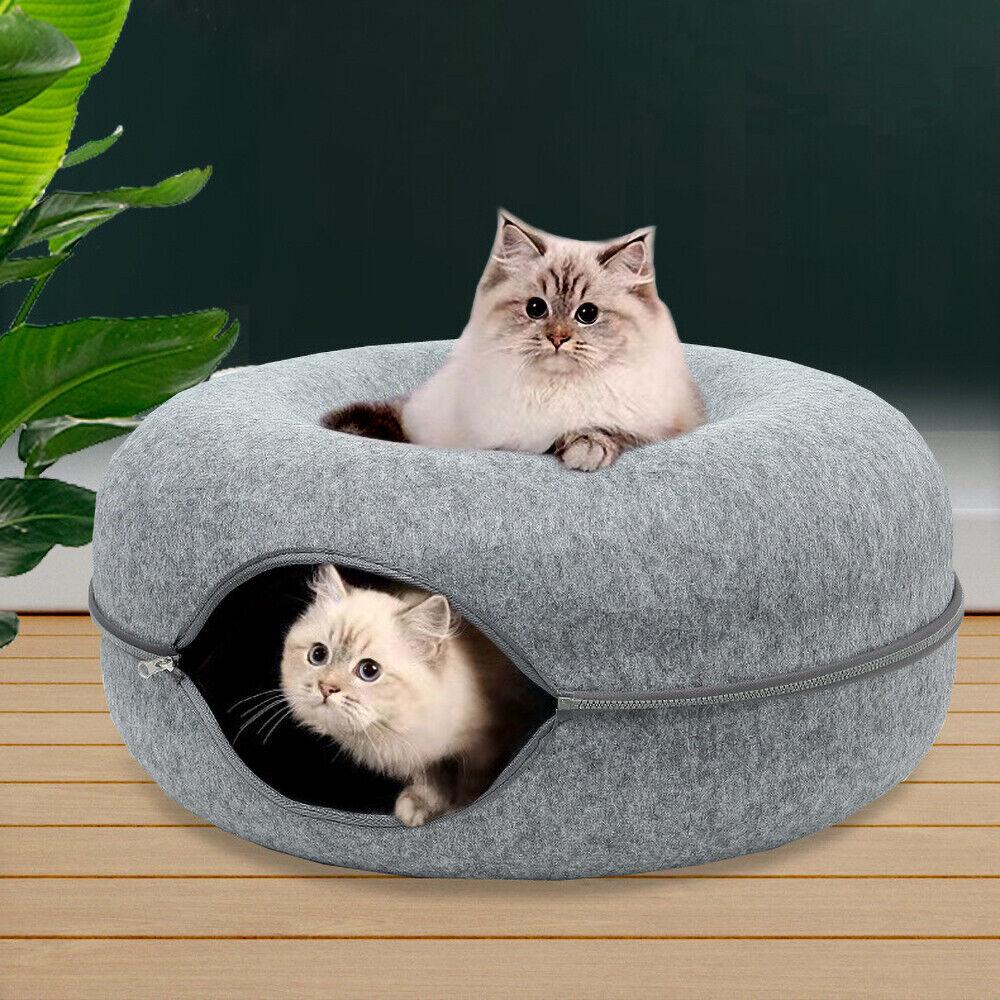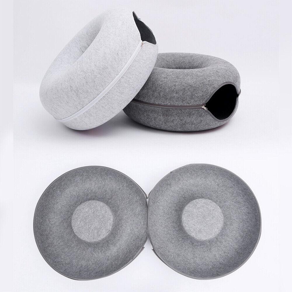 Cat Tunnel Bed Felt Pet Puppy Nest Cave House Round Donut Interactive Play Toy