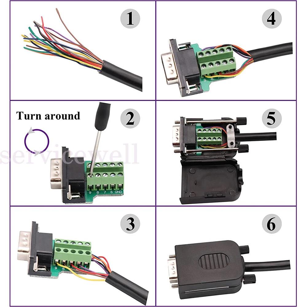 DB9 Connector RS232 Male Female D-SUB DB15 9 Pin 15Pin Plug RS485 Breakout Terminals 21/24 AWG Wire Solderless COM Connectors
