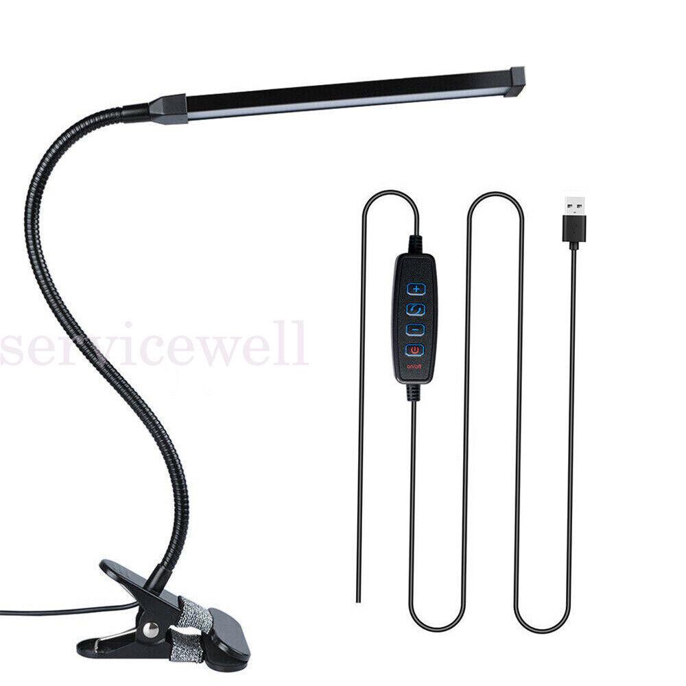 Dimmable Clip On LED Desk Lamp Eye Care USB Power Light Adjustable Clamp