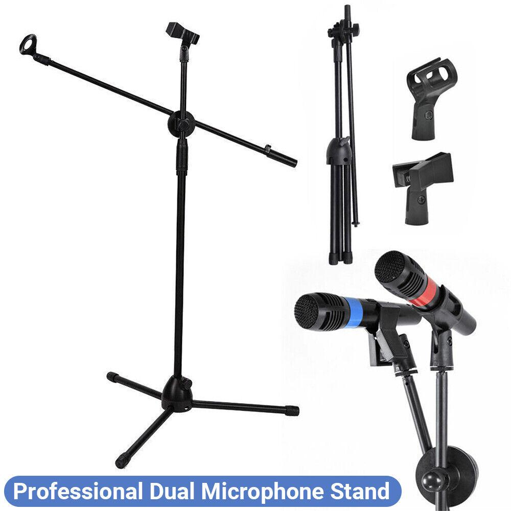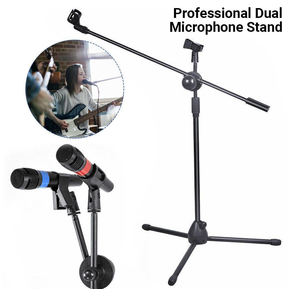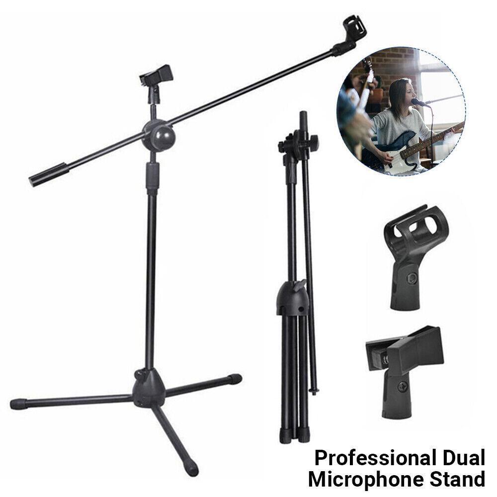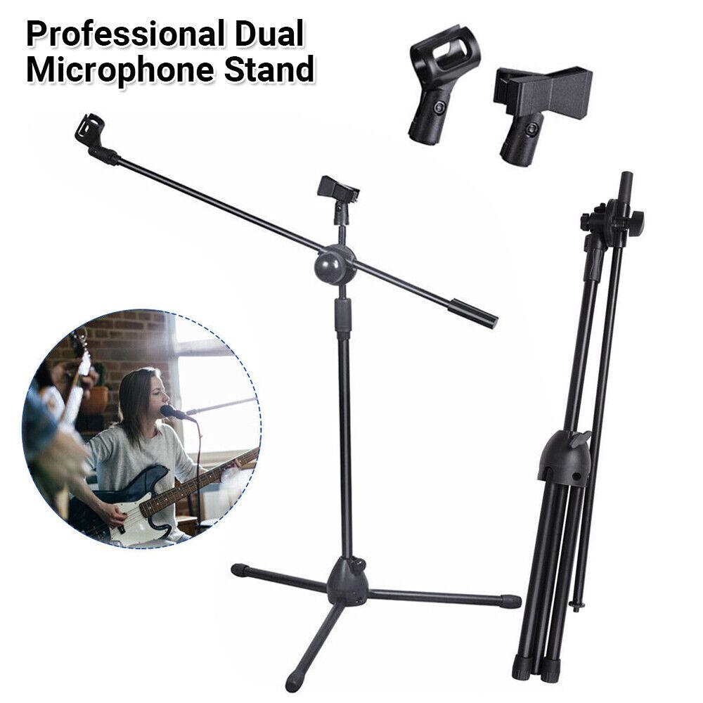 Dual Professional Microphone Stand Telescopic Boom Adjustable Mic Holder Tripod