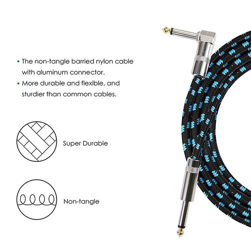– Maximum Shielding against Wear and Tear and Extreme Temperatures provided by the large gauge PVC JacketStrong black PVC or Braided outer shell designed for daily use- 1/4″ Jacks with Nickel Plated Plugs- Oxygen free Copper Wire for Low Noise Resistance and Superior Performance