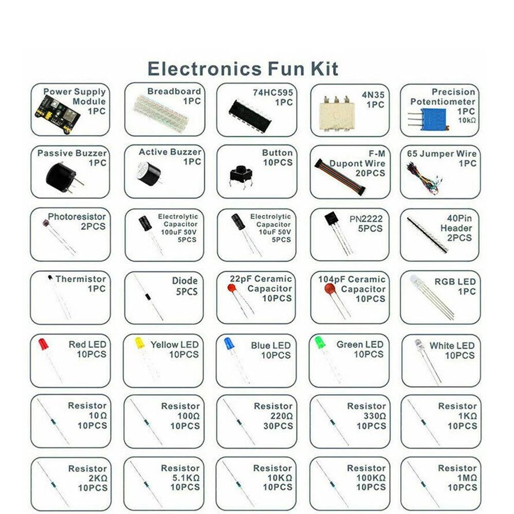 Electronics Component Basic Starter Kit with 830 Tie-Points Breadboard Resistor