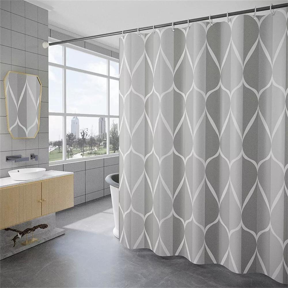 220x200cm Extra Long Fabric Waterproof Shower Curtain with 12 Hooks Weighted Hem