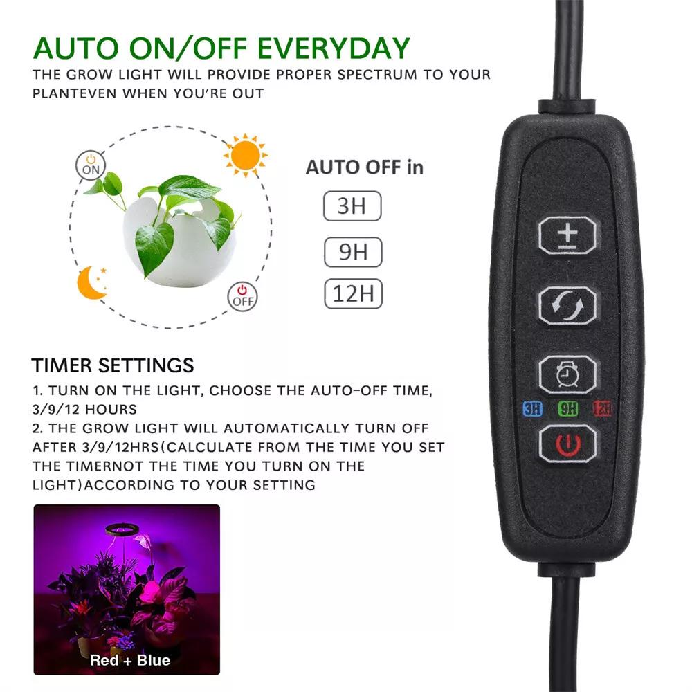 [Timer and Brightness Adjustment] This grow light has 9 brightness settings, you can freely choose the brightness that best suits your plant growth. The grow light provides 3 timing options, you can time it for 3 hours, 9 hours and 12 hours, after timing, the light can be automatically switched on and off repeatedly every day, so you no longer need to operate it manually every day.