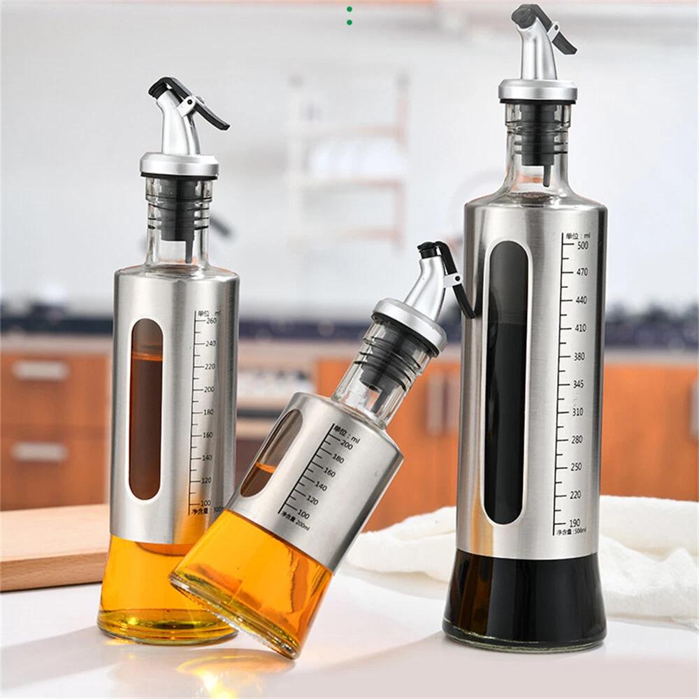 300/500ML Glass Oil Dispenser Spout Olive Vinegar Pourer Stainless Empty Bottle