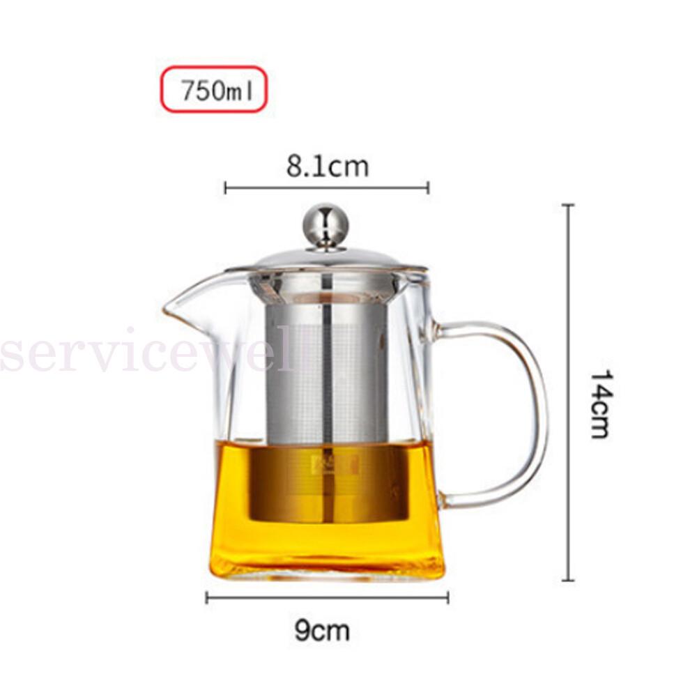 Glass Teapot Kettle With Filter Infuser Coffee Tea Pot Heat Resistant 750ml