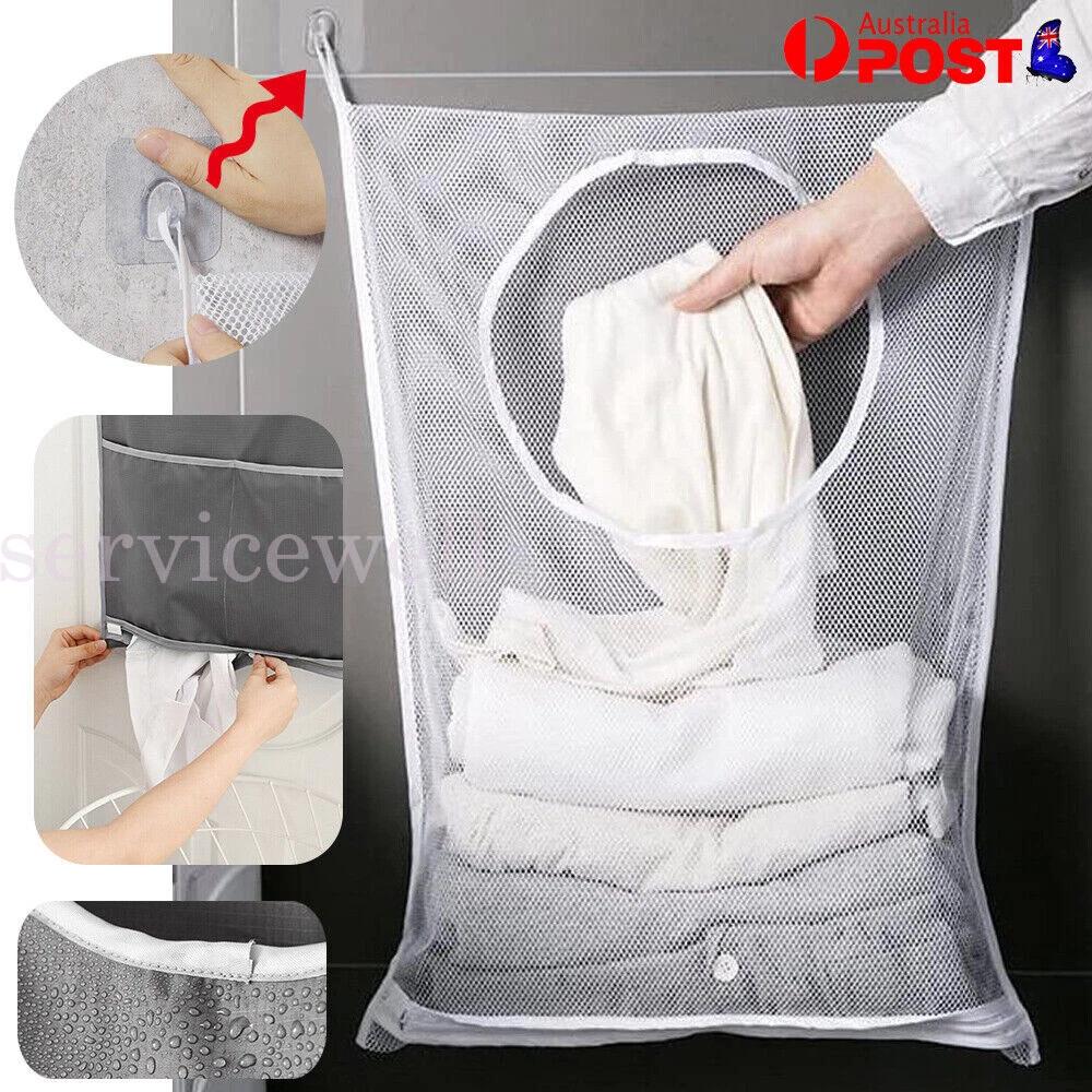 Hanging Laundry Bag Over Door Clothes Washing Storage Basket Foldable Hamper AU